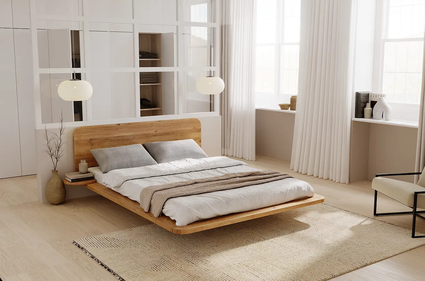 Łóżko lewitujące drewniane dębowe Skandica JAPANDIC