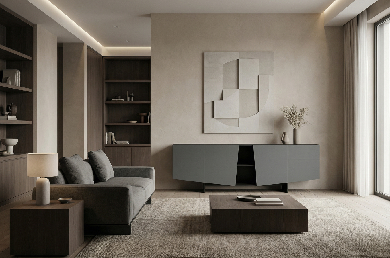 Nowoczesna szara szafka RTV z szufladami Skandica WING / szer. 200 cm
