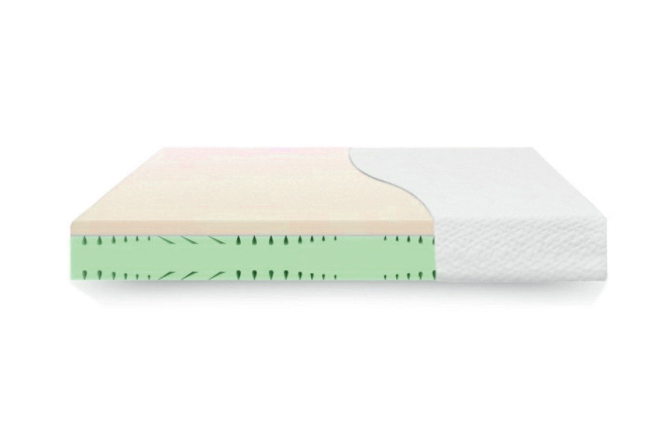 - Pianka Kaltschaum (dolna warstwa) to wysokoelastyczna i wyprofilowana pianka poliuretanowa o zwiększonej sprężystości i wytrzymałości. Dzięki niej, twardość materaca jest inna w każdym punkcie i tworzy dzięki temu idealne podparcie dla całego ciała.