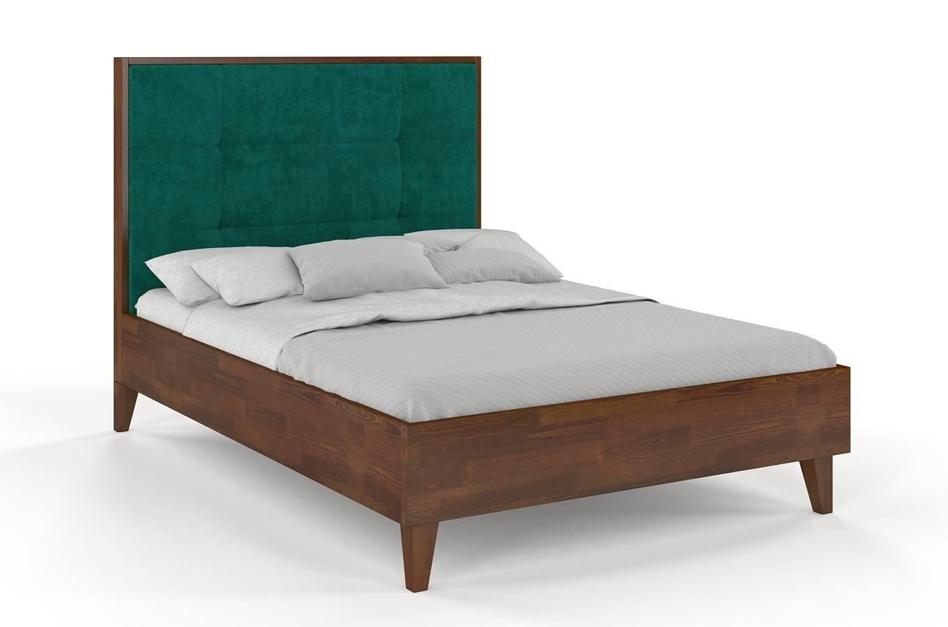 Drewniane łóżko z tapicerowanym zagłówkiem