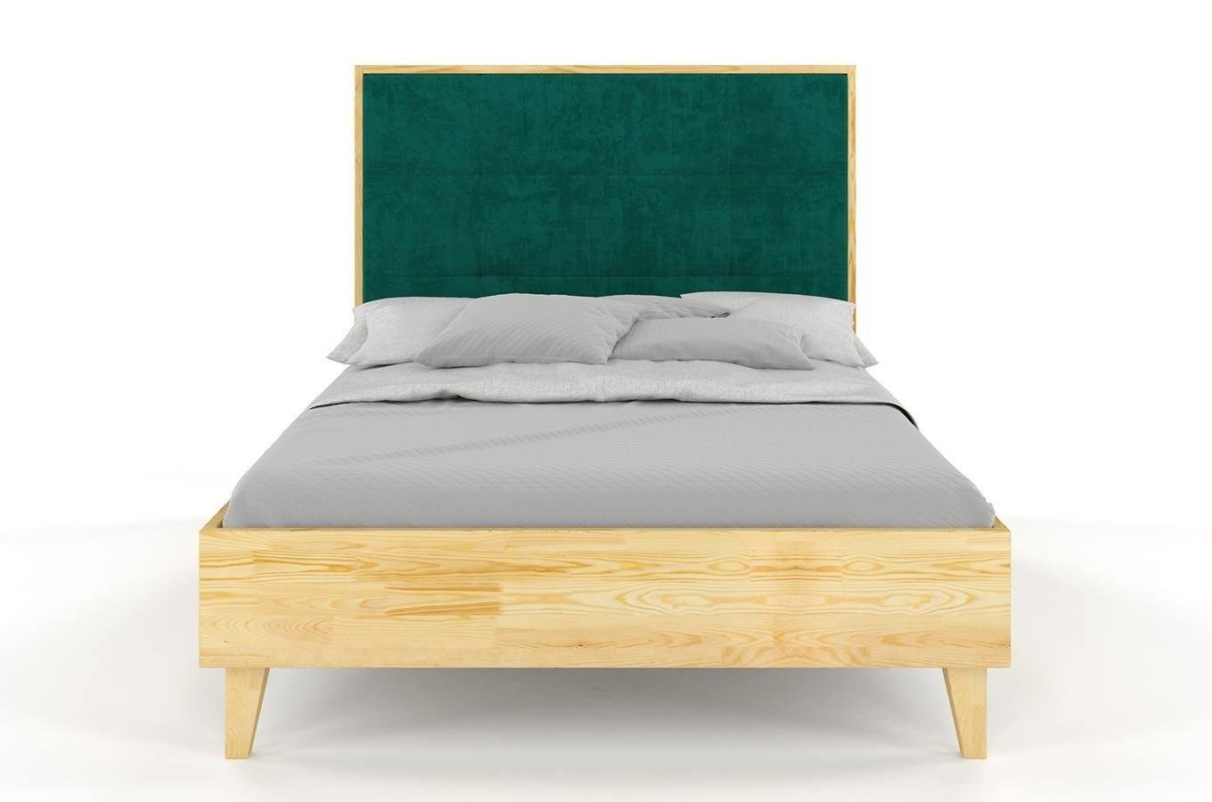 Drewniane, sosnowe łóżko do sypialni Visby FRIDA to ceniony i stylowy mebel, który odmieni każdą sypialnię, a ponadto zapewni wygodny i doskonały wypoczynek. Elementem wyróżniającym to łóżko jest wysoki, tapicerowany w prostokąty zagłówek zamknięty w drewnianej ramie, na którym swobodnie można oprzeć poduszkę i z wielką przyjemnością czytać książki lub oglądać telewizję.