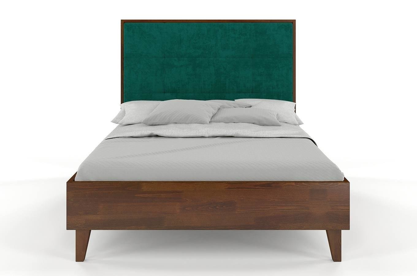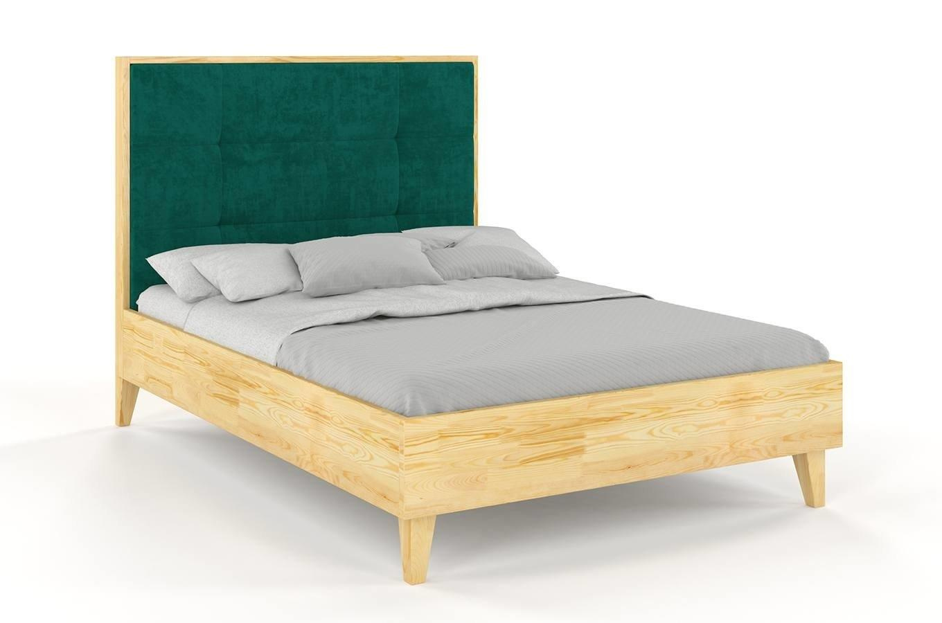 Łóżko drewniane sosnowe Visby FRIDA z wysokim zagłówkiem / 180x200 cm, kolor naturalny, zagłówek French Velvet 670