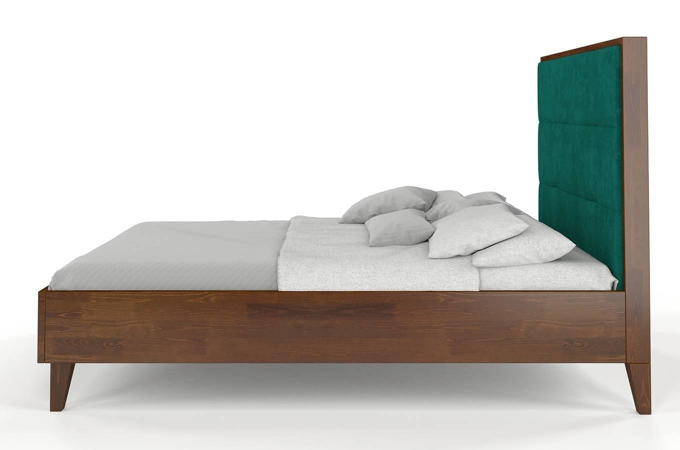 Drewniane łóżko z tapicerowanym zagłówkiem