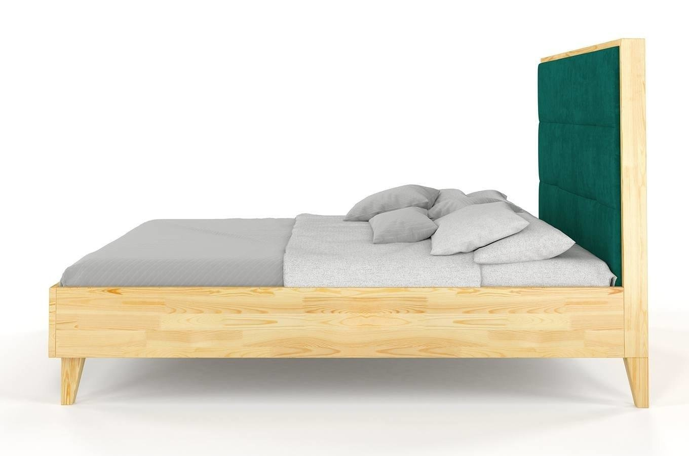 Łóżko drewniane sosnowe Visby FRIDA z wysokim zagłówkiem / 120x200 cm, kolor naturalny, zagłówek French Velvet 659