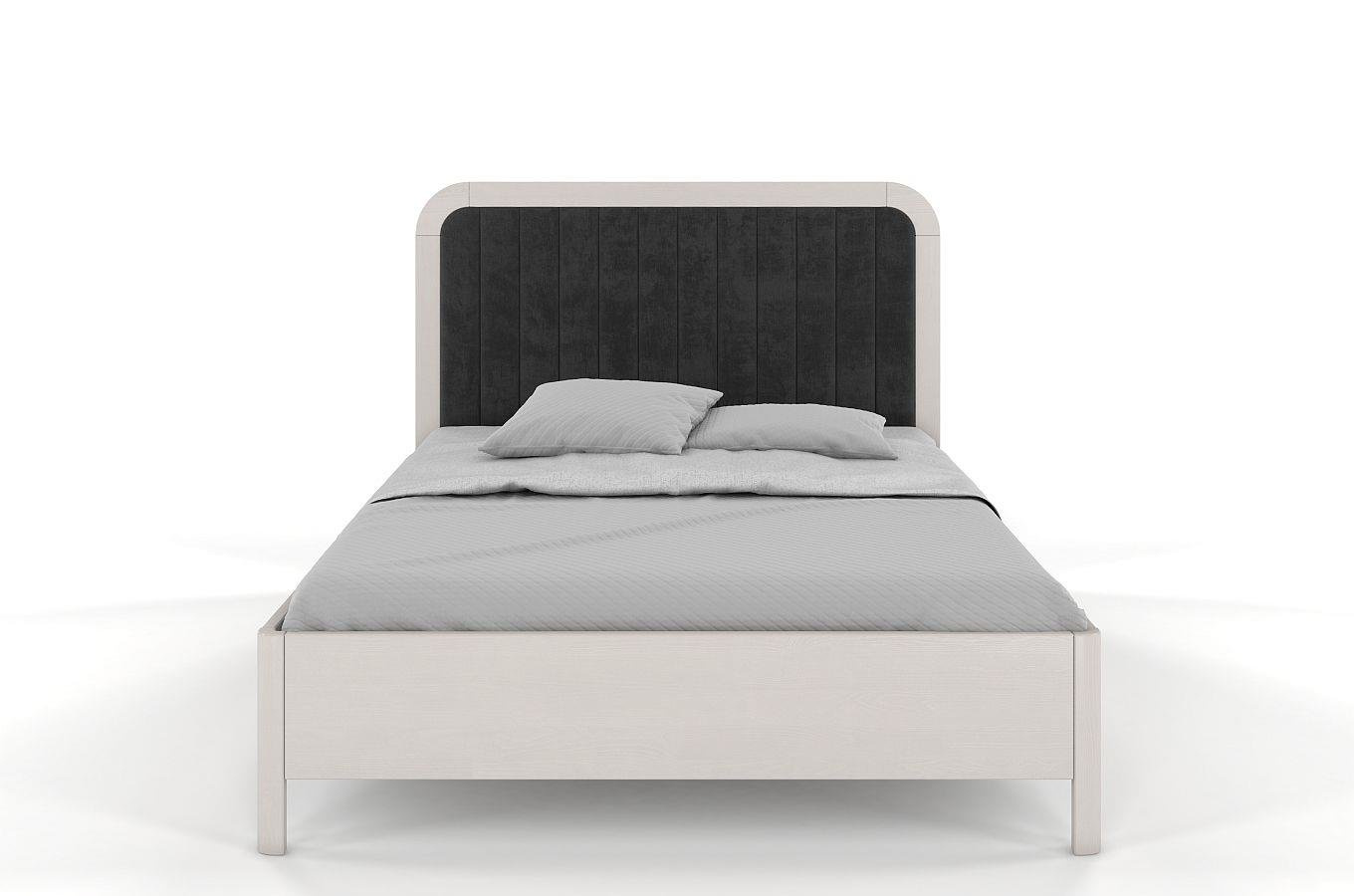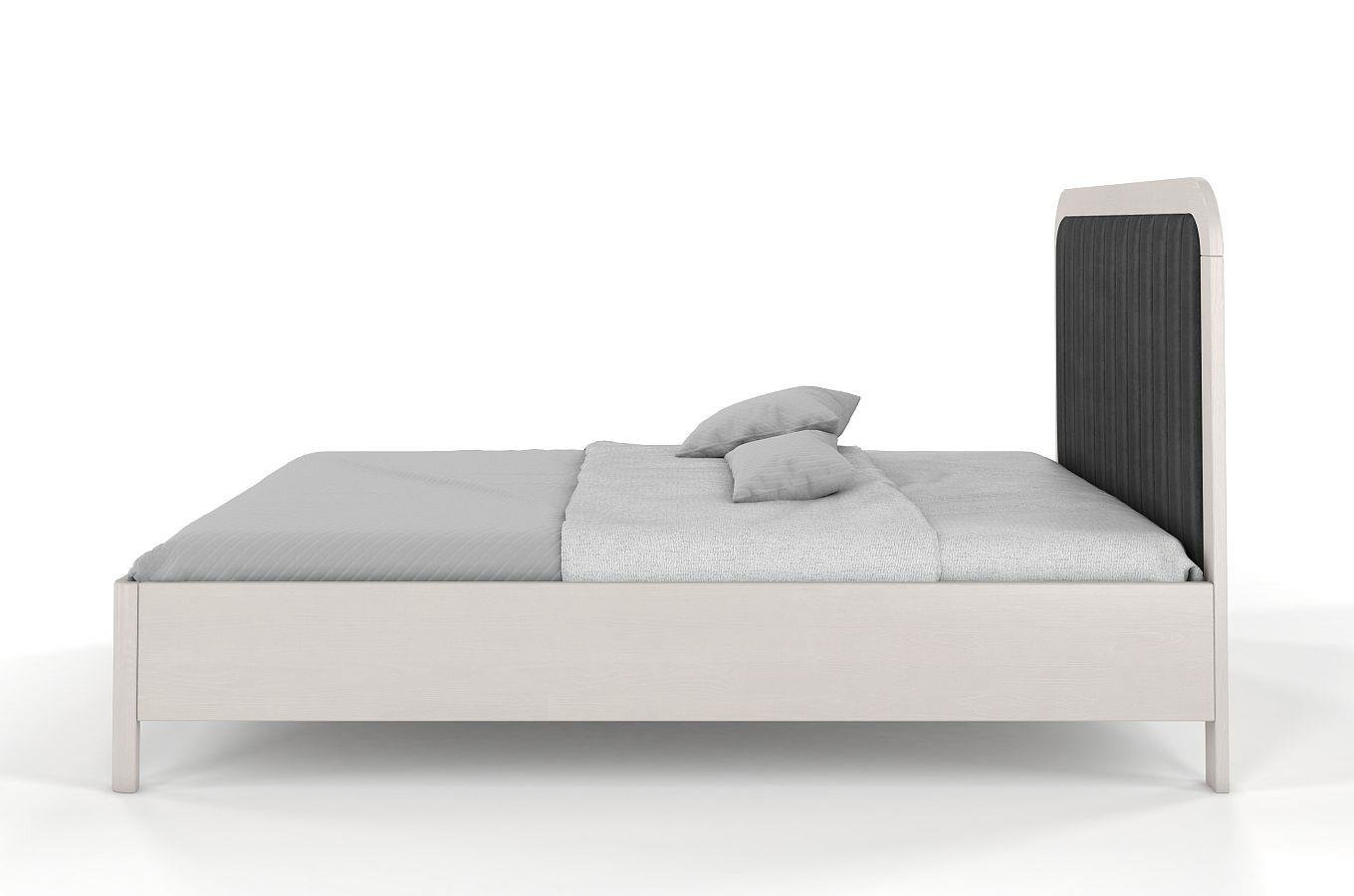 Tapicerowane łóżko drewniane sosnowe Visby MODENA z wysokim zagłówkiem / 200x200 cm, kolor biały, zagłówek Casablanca 2315