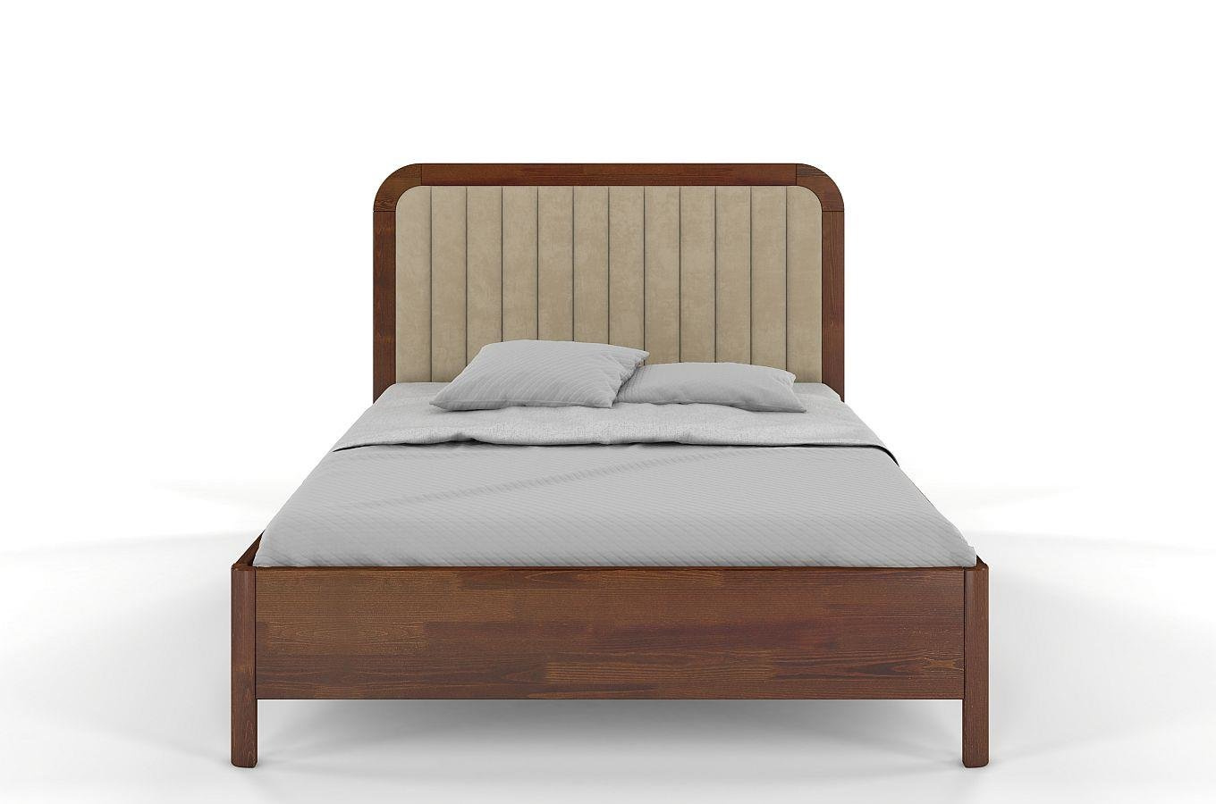 Tapicerowane łóżko drewniane sosnowe Visby MODENA z wysokim zagłówkiem / 140x200 cm, kolor orzech, zagłówek Casablanca 2303
