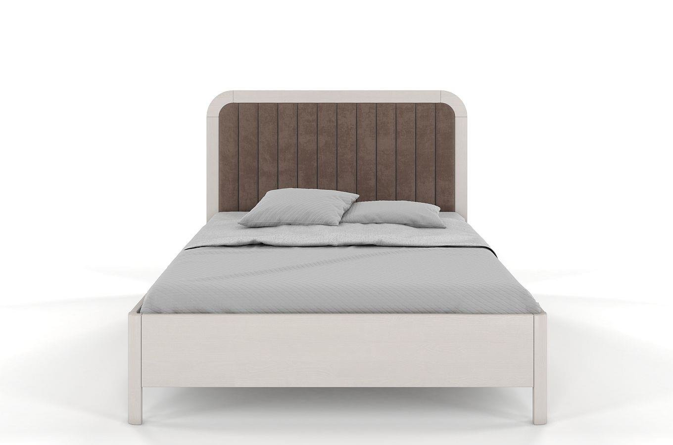 Tapicerowane łóżko drewniane sosnowe Visby MODENA z wysokim zagłówkiem / 140x200 cm, kolor biały, zagłówek Casablanca 2306
