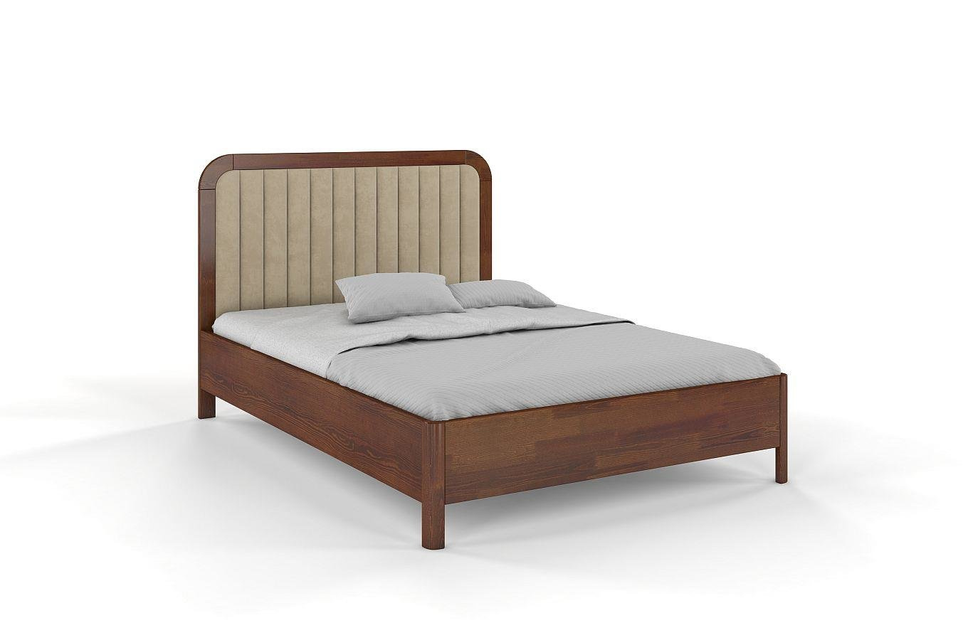 Tapicerowane łóżko drewniane sosnowe Visby MODENA z wysokim zagłówkiem / 120x200 cm, kolor orzech, zagłówek Casablanca 2303