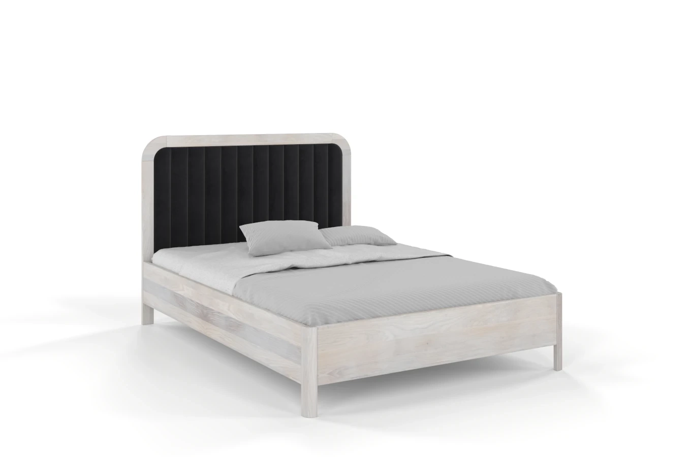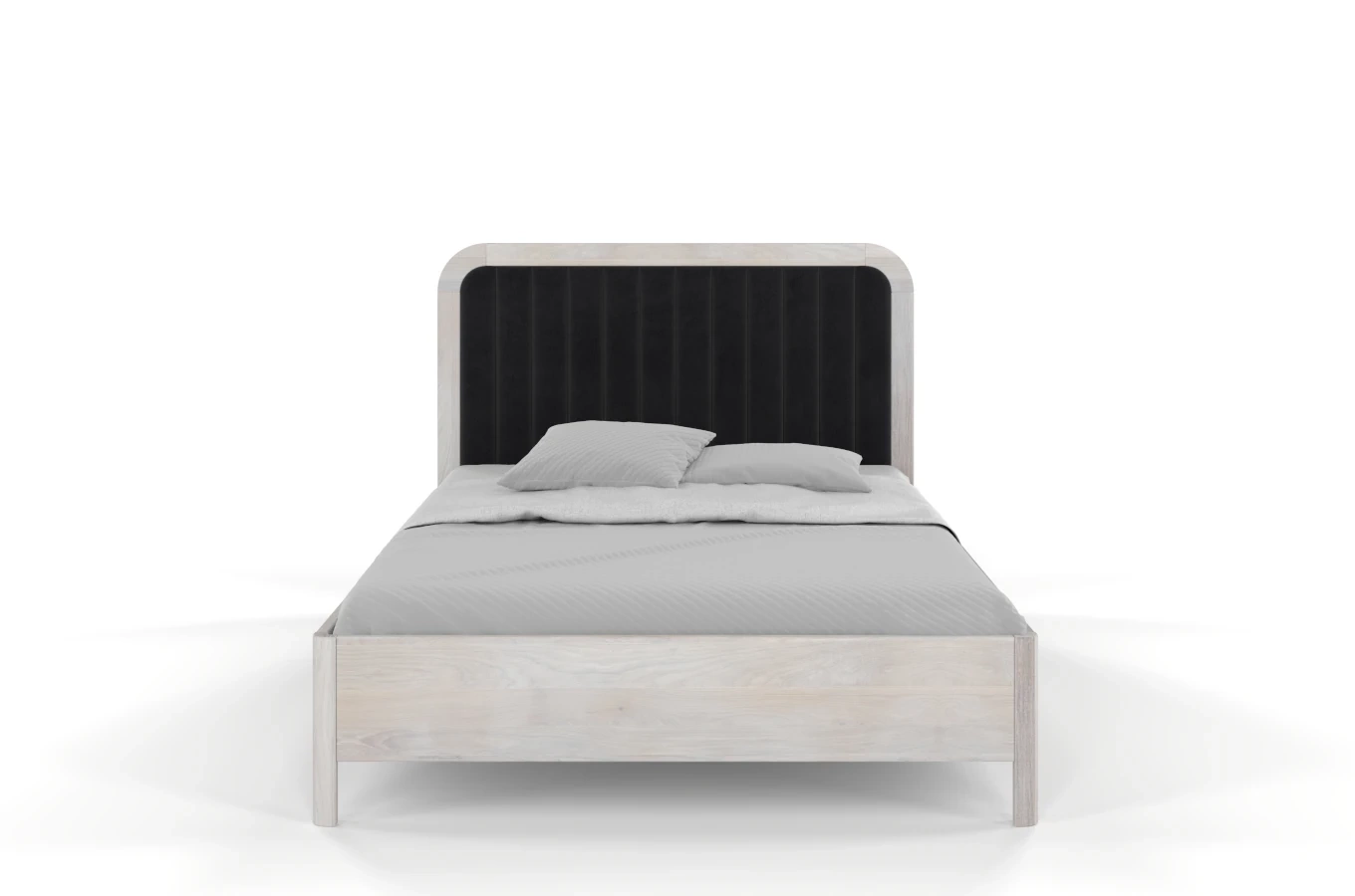 Tapicerowane łóżko drewniane dębowe Visby MODENA z wysokim zagłówkiem / 140x200 cm, olej bielony, zagłówek Casablanca 2316