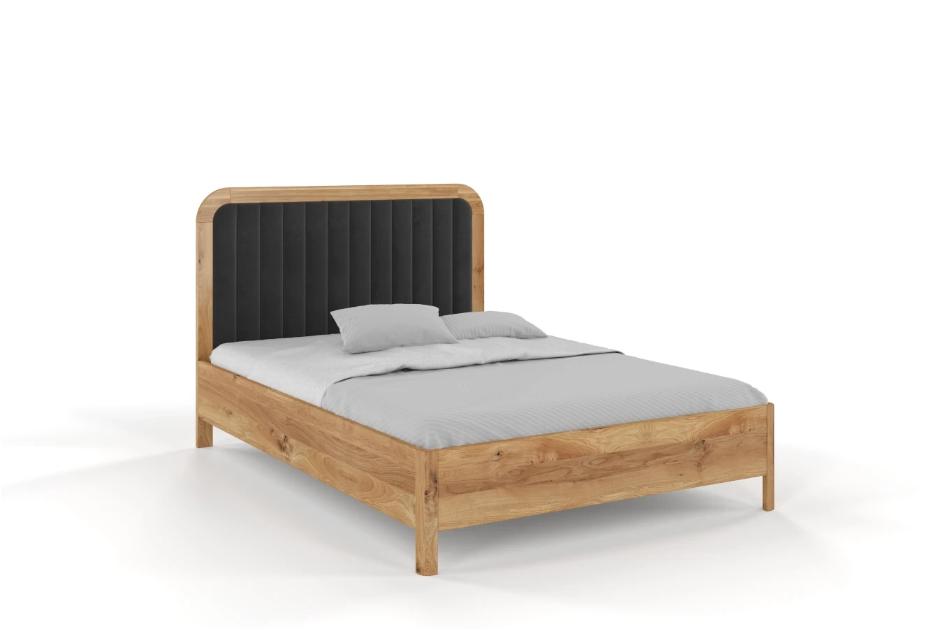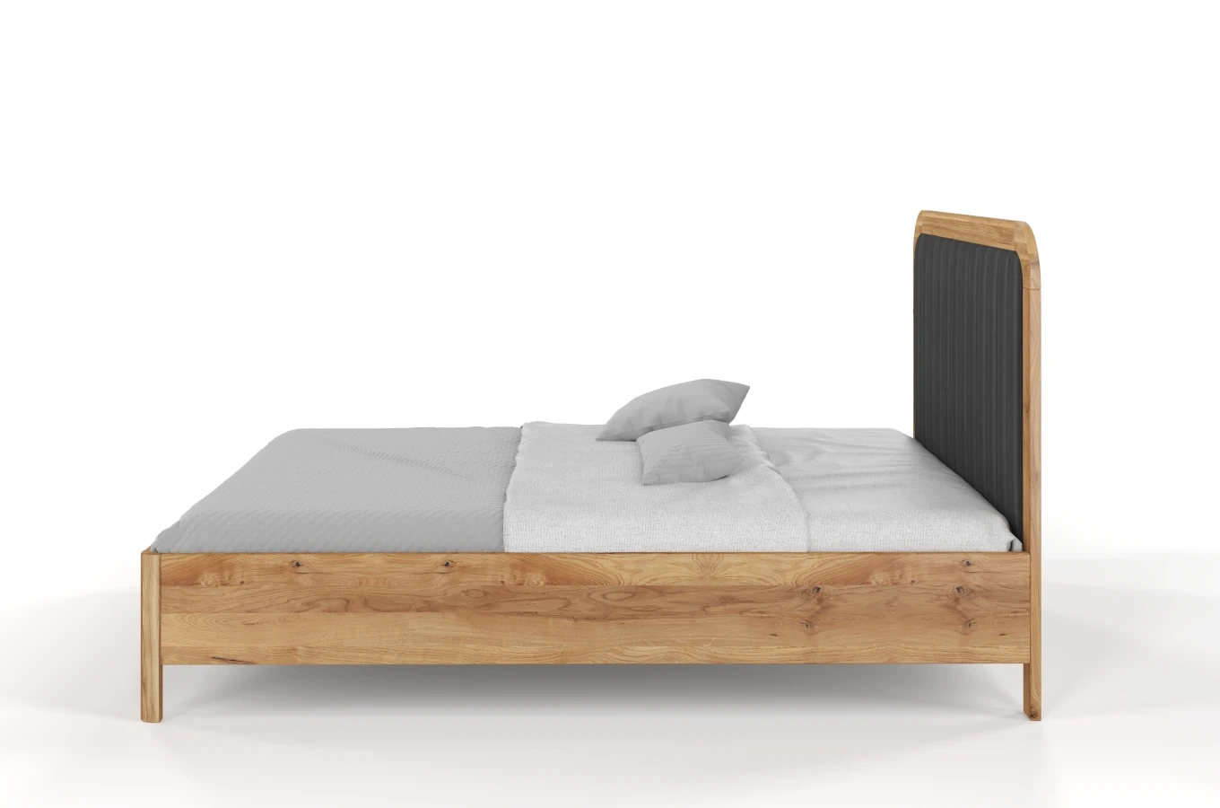 Tapicerowane łóżko drewniane dębowe Visby MODENA z wysokim zagłówkiem / 140x200 cm, lakier naturalny, zagłówek Casablanca 2315