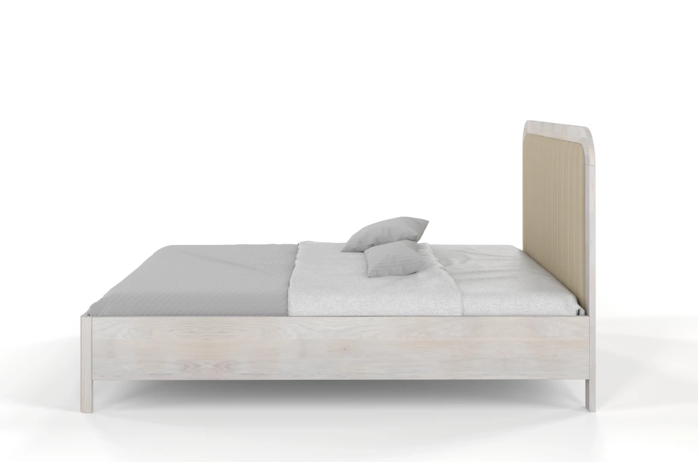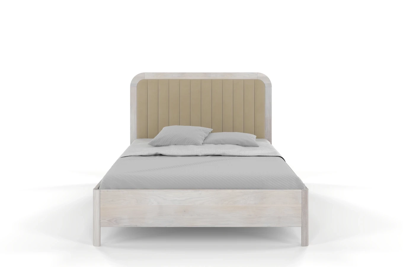 Tapicerowane łóżko drewniane dębowe Visby MODENA z wysokim zagłówkiem / 180x200 cm, olej bielony, zagłówek Casablanca 2303