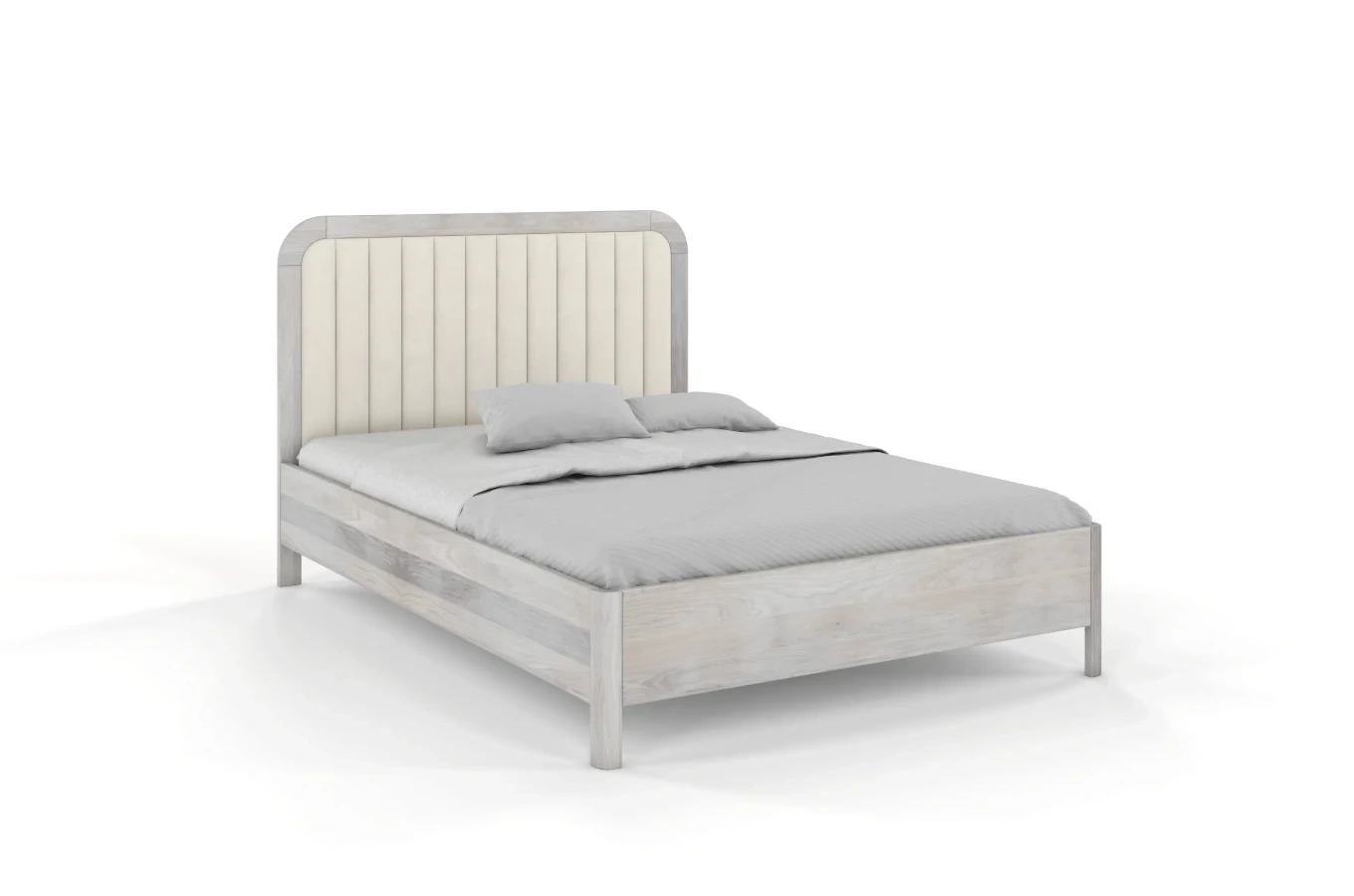 Tapicerowane łóżko drewniane dębowe Visby MODENA z wysokim zagłówkiem / 200x200 cm, olej bielony, zagłówek Casablanca 2303