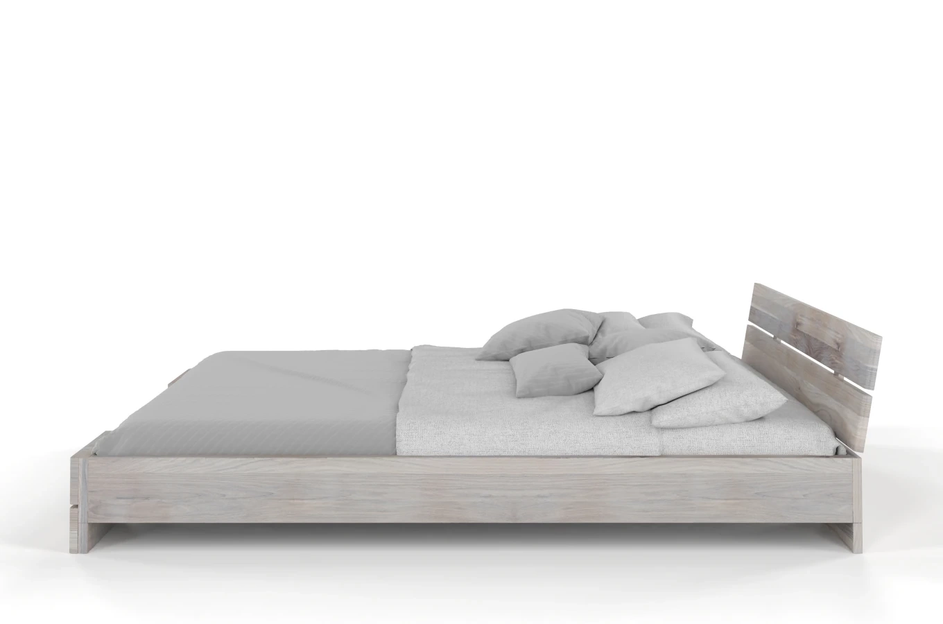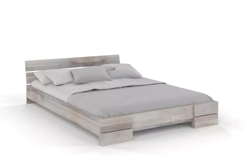 Dzięki niskiemu ułożeniu materaca, łóżko SANDEMO nie dominuje w sypialni, ale doskonale wpisuje się w jej wnętrze i stylistykę. Taka wysokość spełnia wszelkie potrzeby wygody przy jednoczesnym zachowaniu zgrabnych gabarytów. Dopełnieniem tego nienachalnego minimalizmu jest zagłówek wykonany z dwóch poziomo ułożonych desek. Zaoblenie na górnej krawędzi szczytowej deski zagłówka nawiązuje do podobnego rozwiązania zastosowanego w nogach.