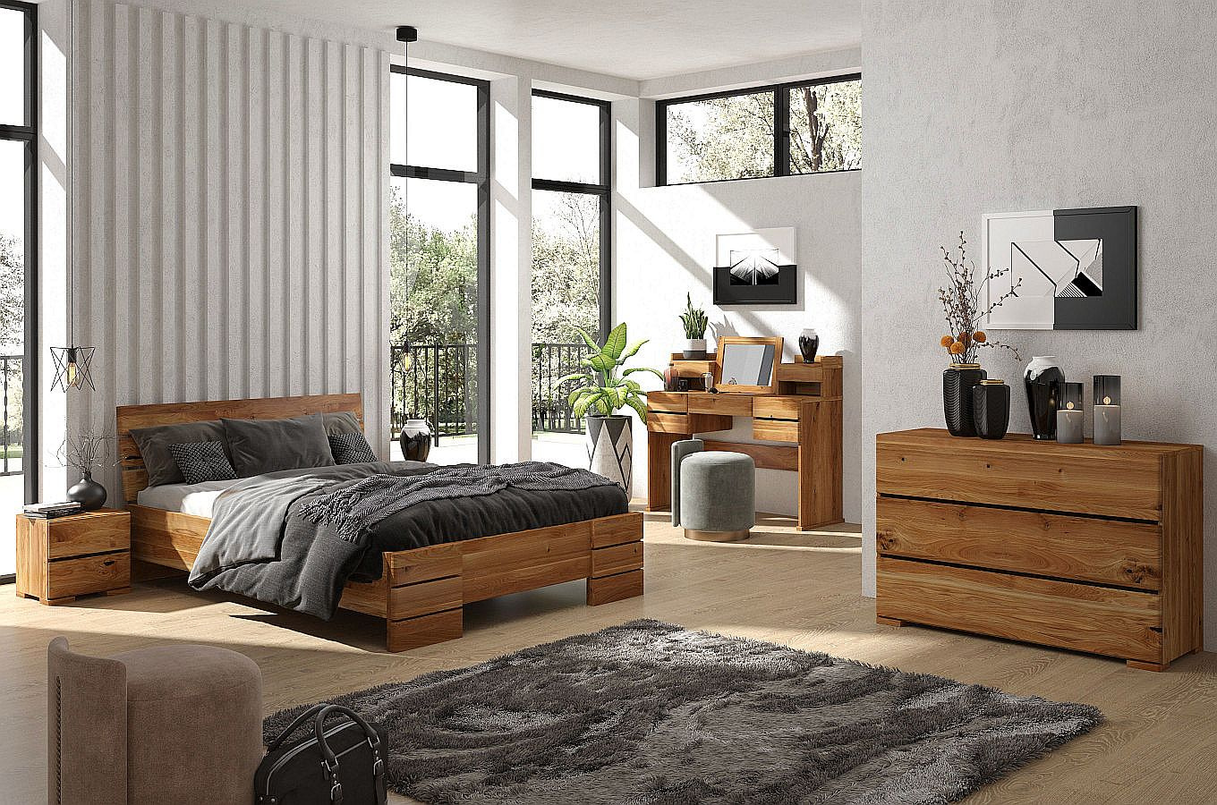 Łóżko drewniane dębowe Visby Sandemo High / 200x200 cm, lakier naturalny