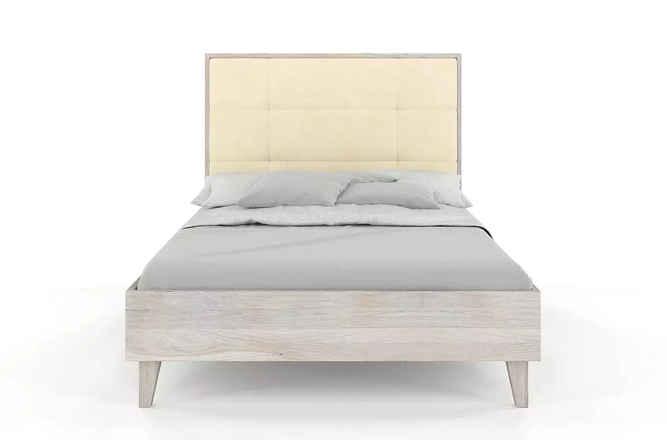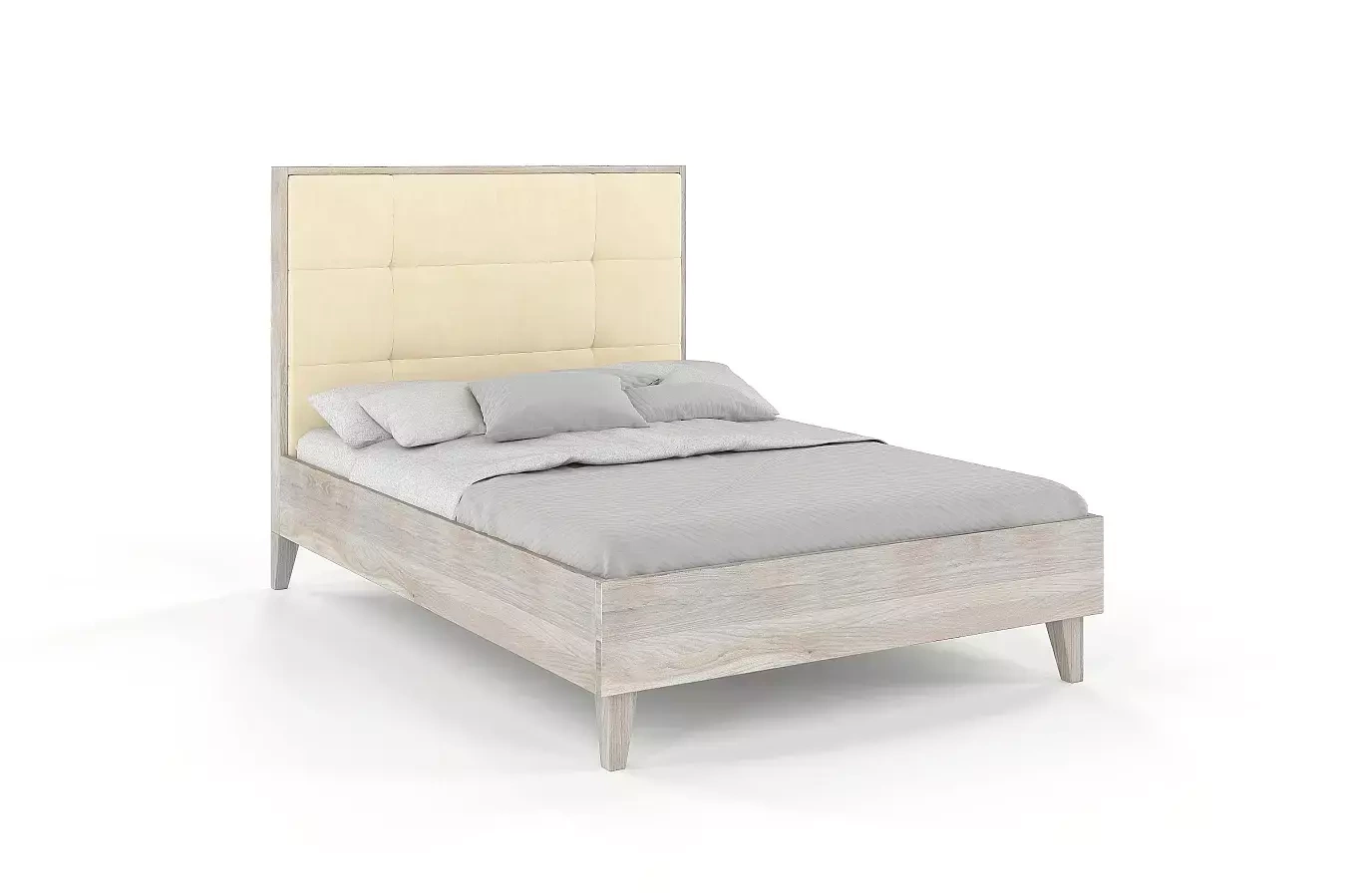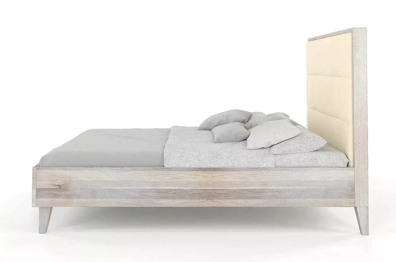 Drewniane, dębowe łóżko do sypialni Visby FRIDA to ceniony i stylowy mebel, który odmieni każdą sypialnię, a ponadto zapewni wygodny i doskonały wypoczynek. Elementem wyróżniającym to łóżko jest wysoki, tapicerowany zagłówek zamknięty w drewnianej ramie, na którym swobodnie można oprzeć poduszkę i z wielką przyjemnością czytać książki lub oglądać telewizję.