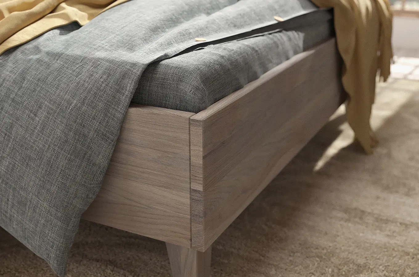 - ”Piąta” i ”szósta” noga wzmacniająca konstrukcję łóżka wykonana jest z drewna dębowego; mocowane do środkowej belki podtrzymującej stelaż