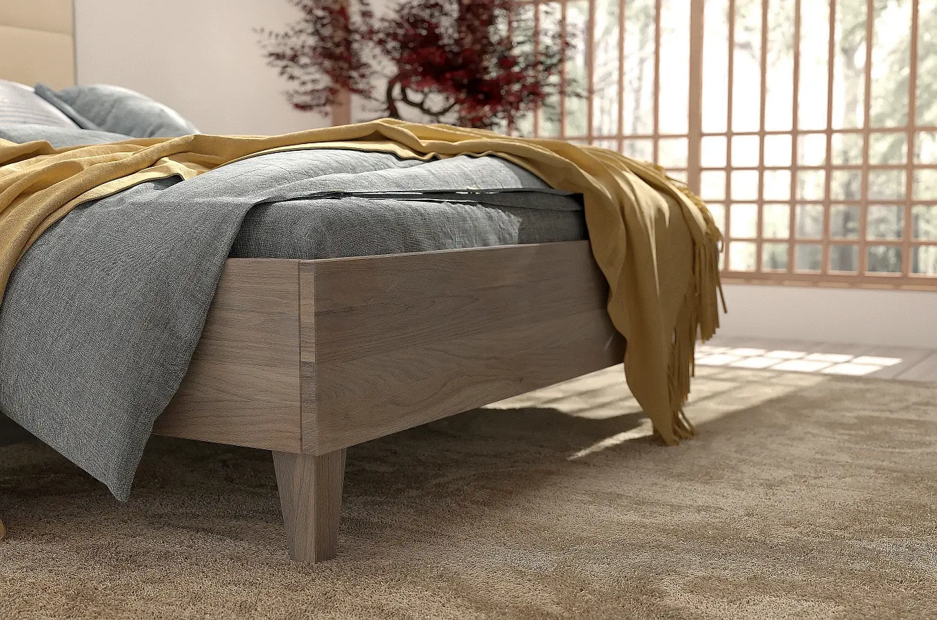 • ”Piąta” i ”szósta” noga wzmacniająca konstrukcję łóżka wykonana jest z drewna dębowego; mocowane do środkowej belki podtrzymującej stelaż