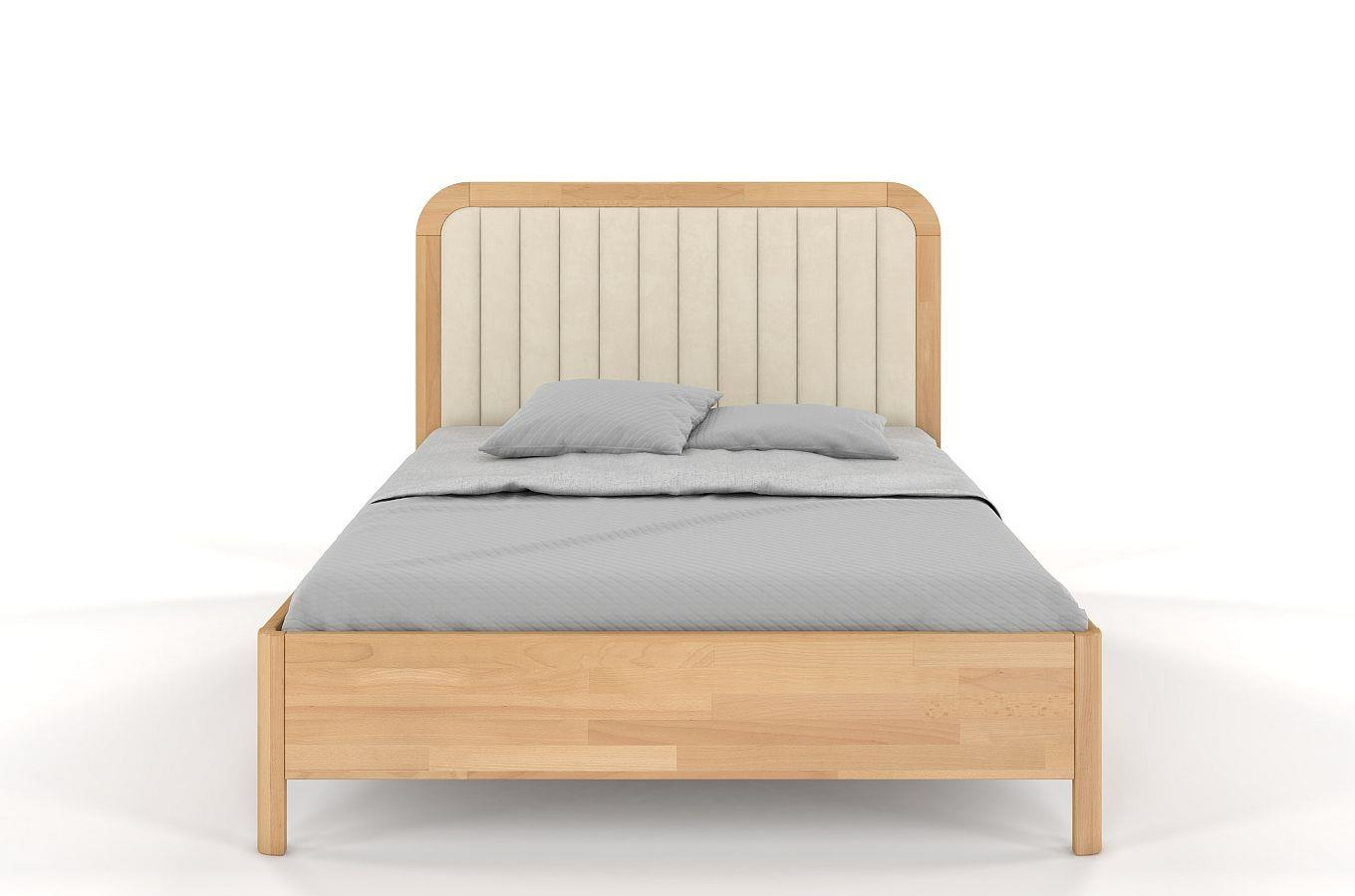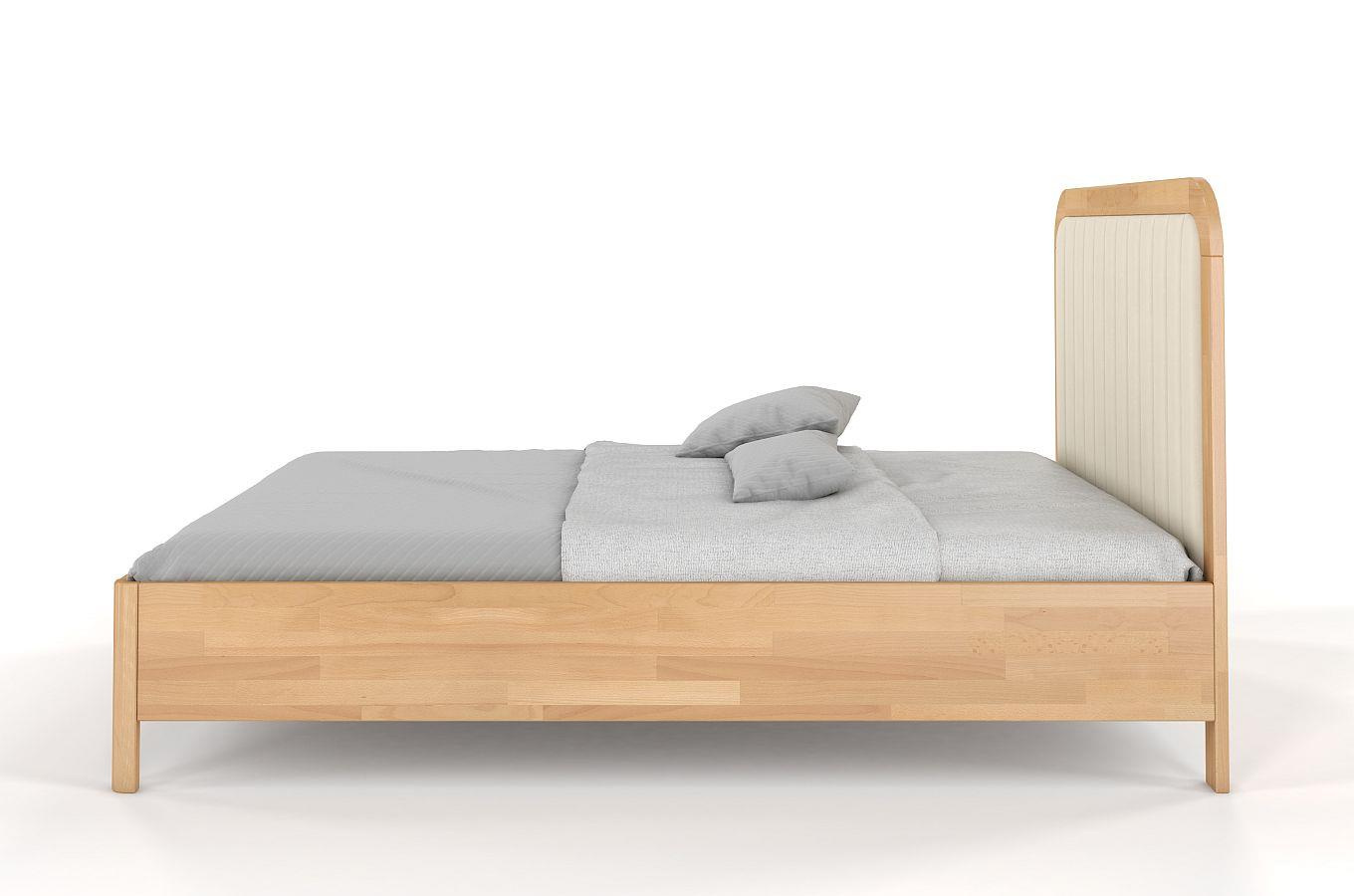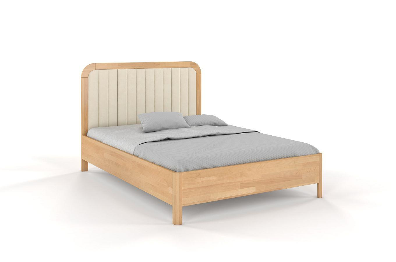 Tapicerowane łóżko drewniane bukowe Visby MODENA BC z wysokim zagłówkiem / 180x200 cm, kolor naturalny, zagłówek Casablanca 2301 (skrzynia na pościel)