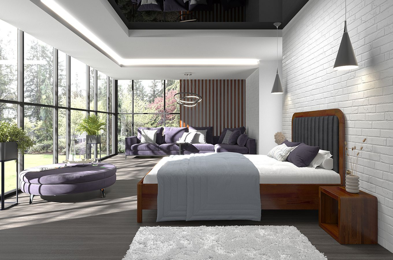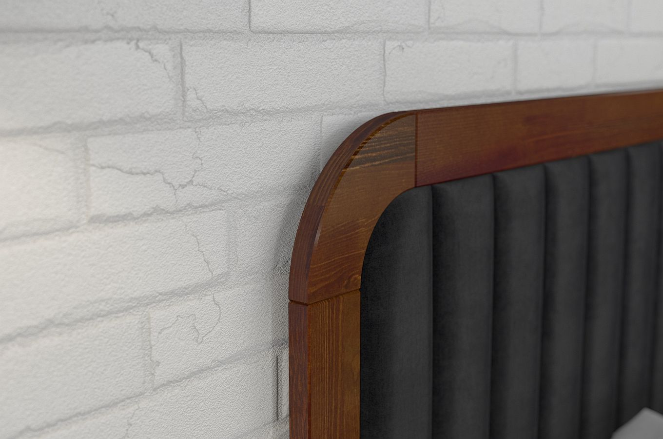 Elementem wyróżniającym to łóżko jest wysoki, tapicerowany zagłówek z pionowymi przeszyciami, otoczony drewnianą ramą o zaokrąglonych krawędziach. Zaokrąglone są również wysokie nogi łóżka. Brak ostrych krawędzi sprawia, że łóżko jest bezpieczne w użytkowaniu i wyróżnia się na tle innych modeli. Dodatkowym atutem jest praktyczna skrzynia na pościel, którą otwiera się lekko dzięki zastosowanym siłownikom gazowym oraz specjalnej taśmie zamocowanej wokół ramy skrzyni.