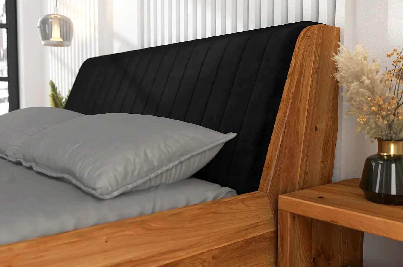 Nowoczesne łóżko drewniane z tapicerowanym zagłówkiem
