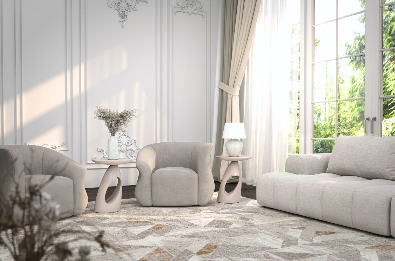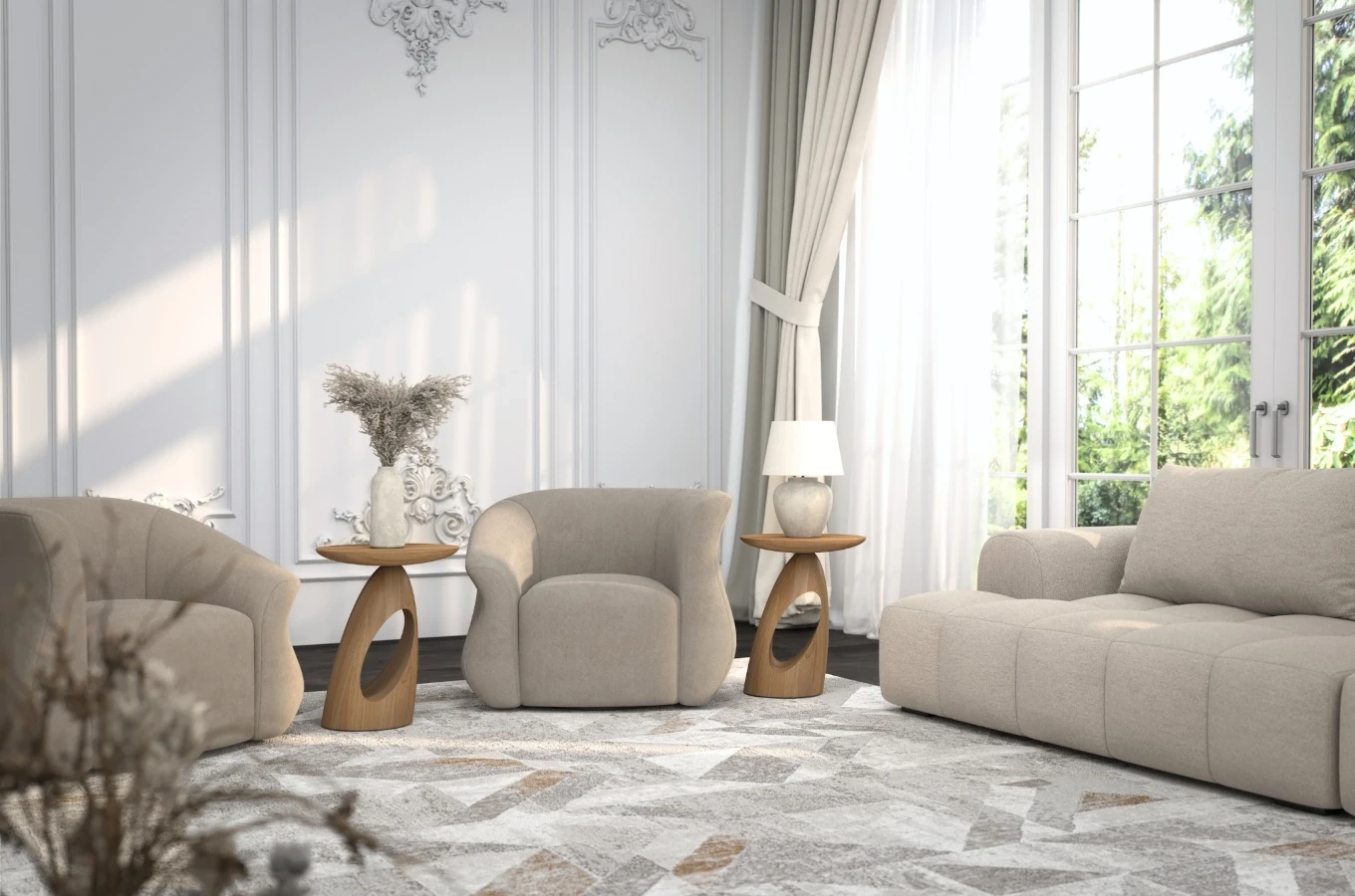 - Modny design: Rzeźbiarska forma inspirowana stylem japandi.