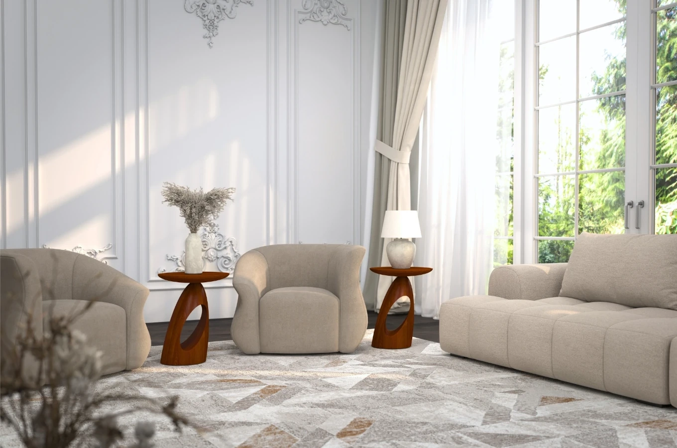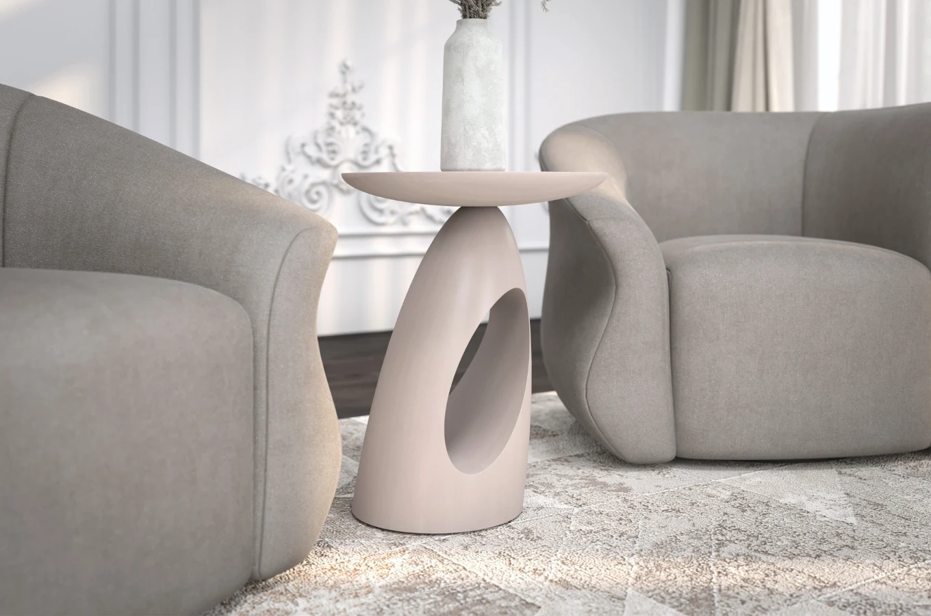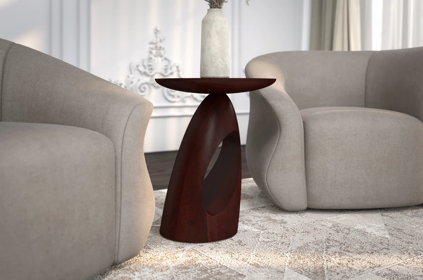 Stolik drewniany Kayani ISLAND to wyjątkowe połączenie minimalistycznej elegancji i organicznych kształtów, inspirowane stylem japandi. Jego rzeźbiarska forma, podkreślona asymetryczną podstawą z subtelnym, owalnym otworem, nadaje mu lekkości i nowoczesnego charakteru. Dzięki kompaktowym wymiarom (32 x 40 cm) doskonale wpisuje się w niewielkie przestrzenie, zapewniając funkcjonalną powierzchnię na filiżankę kawy, ulubioną książkę czy stylowe dekoracje. Wszechstronność modelu sprawia, że z powodzeniem może pełnić rolę stolika bocznego, kawowego, a nawet designerskiej szafki nocnej.