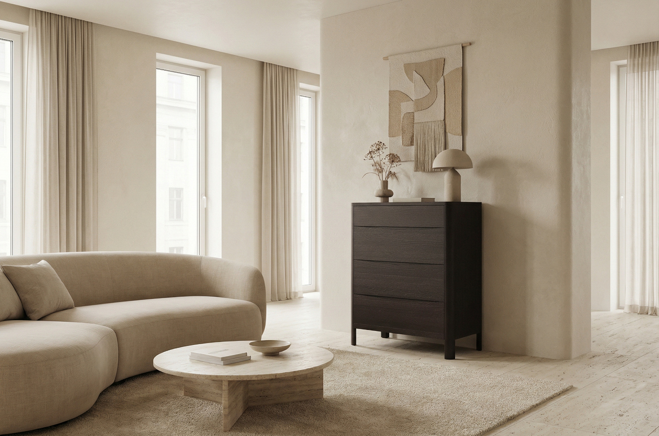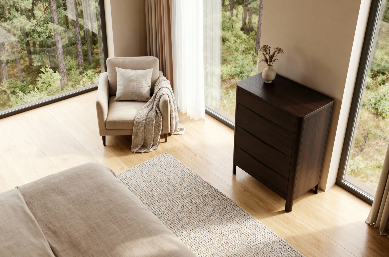 Komoda została wykonana z naturalnego drewna bukowego – materiału cenionego za wyjątkową trwałość, stabilność i szlachetny wygląd. Mebel dostępny jest w czterech wariantach kolorystycznych - spójnych z ofertą Visby - co pozwala tworzyć różnorodne zestawy mebli w całym wnętrzu. Doskonale uzupełnia łóżko z linii >>> MODENA, tworząc przemyślaną i estetyczną całość.