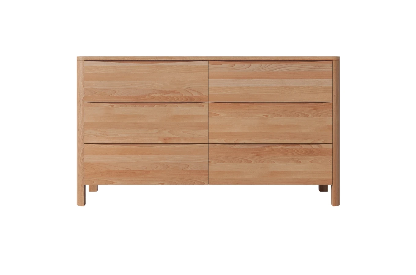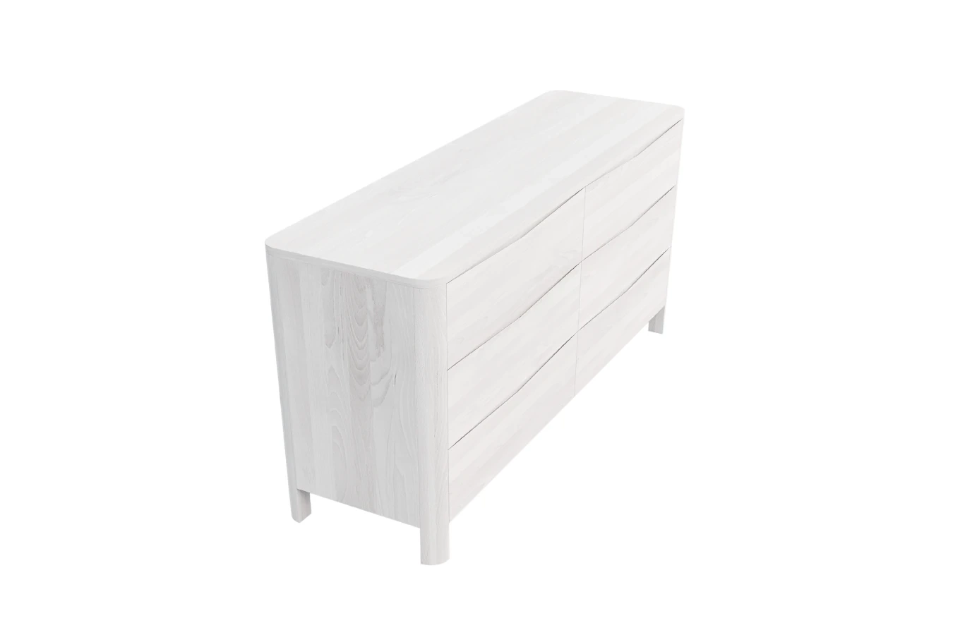 Drewniana komoda bukowa Visby MODENA LOW 150 to doskonałe połączenie nowoczesnej elegancji z praktycznym zastosowaniem. Jej harmonijna forma zachwyca łagodnie zaokrąglonymi narożnikami i charakterystycznym frezowaniem, które biegnie przez całą szerokość frontów. Trójkątna rynna nie tylko zastępuje tradycyjne uchwyty, ale staje się również wyrazistym elementem dekoracyjnym, wpisującym się w ponadczasową estetykę. Aż sześć pojemnych szuflad, osadzonych na prowadnicach z systemem cichego domyku i hamulcem, zapewnia wygodne, bezgłośne użytkowanie i dużą ilość miejsca do przechowywania – bez kompromisów.