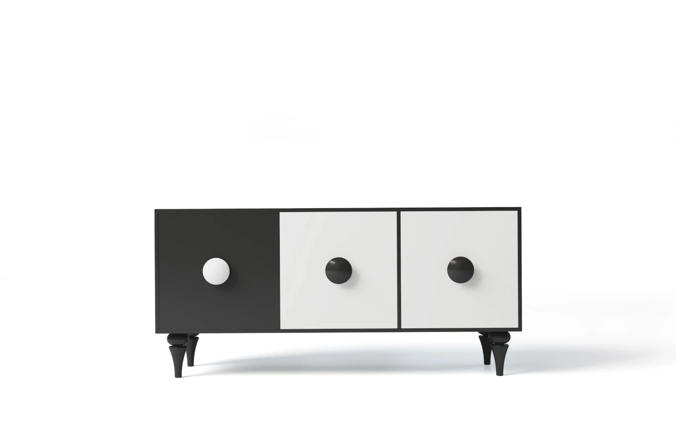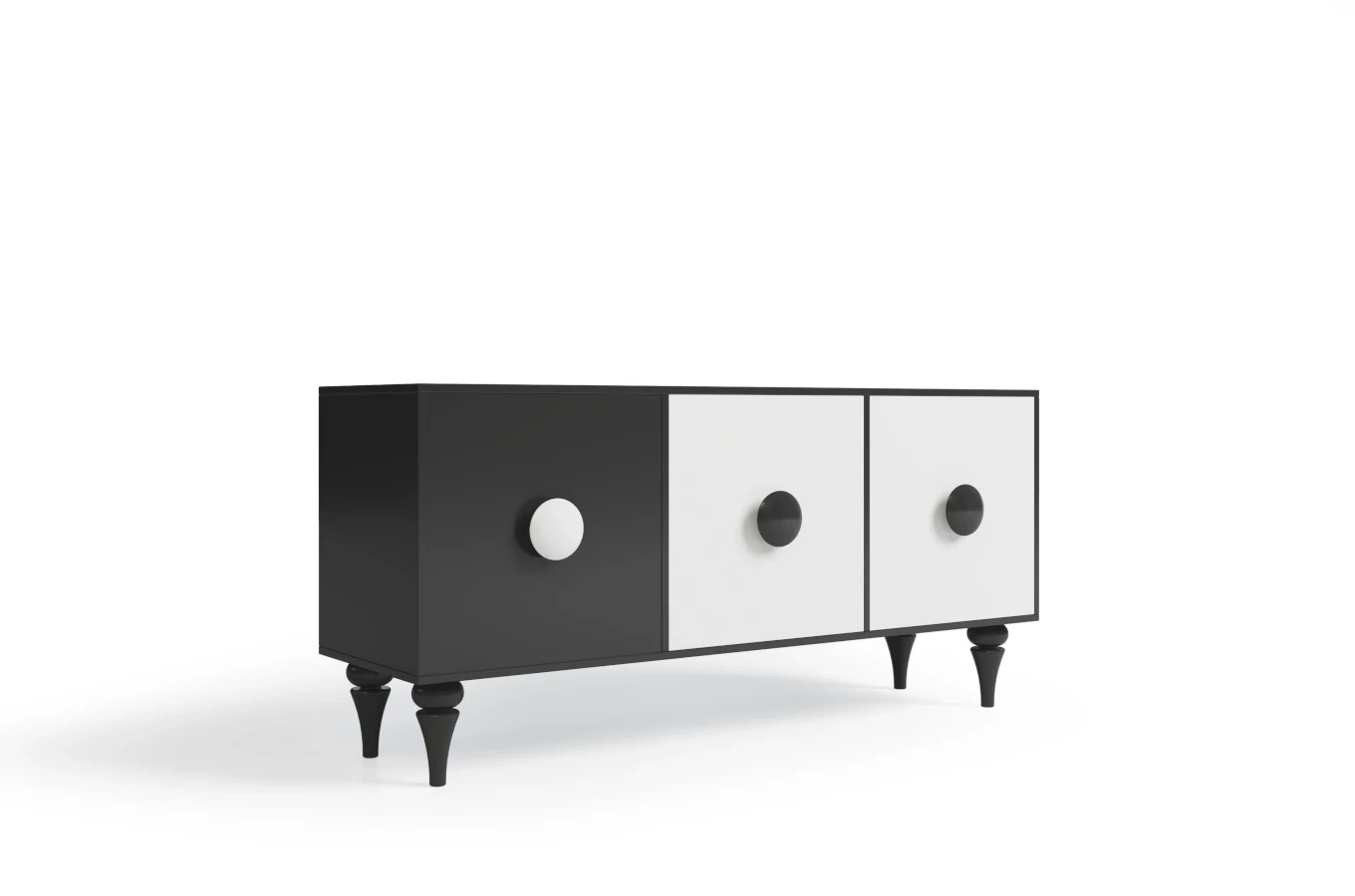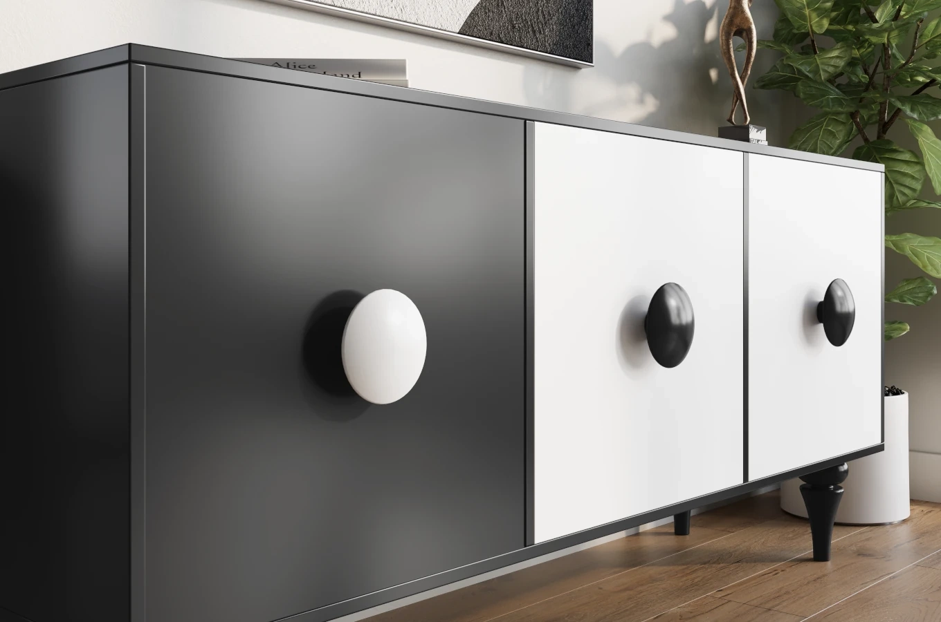 Szukasz mebla, który będzie czymś więcej niż tylko miejscem do przechowywania? Komoda Dancan PARADIS to manifest stylu i wyrafinowanego minimalizmu. Odważna gra czerni i bieli, przełamana dużymi, kontrastowymi uchwytami, sprawia, że komoda przyciąga wzrok niczym nowoczesne dzieło sztuki. Nietypowy podział kolorystyczny frontów dodaje jej dynamiki i czyni ją doskonałym wyborem do nowoczesnych wnętrz – od salonu, przez jadalnię, po biurową przestrzeń. Przemyślany układ wnętrza – z trzema osobnymi komorami wyposażonymi w regulowane półki – zapewnia pełną elastyczność organizacyjną. System cichego domyku dodatkowo podnosi komfort codziennego użytkowania, eliminując hałas i przedłużając żywotność zawiasów.