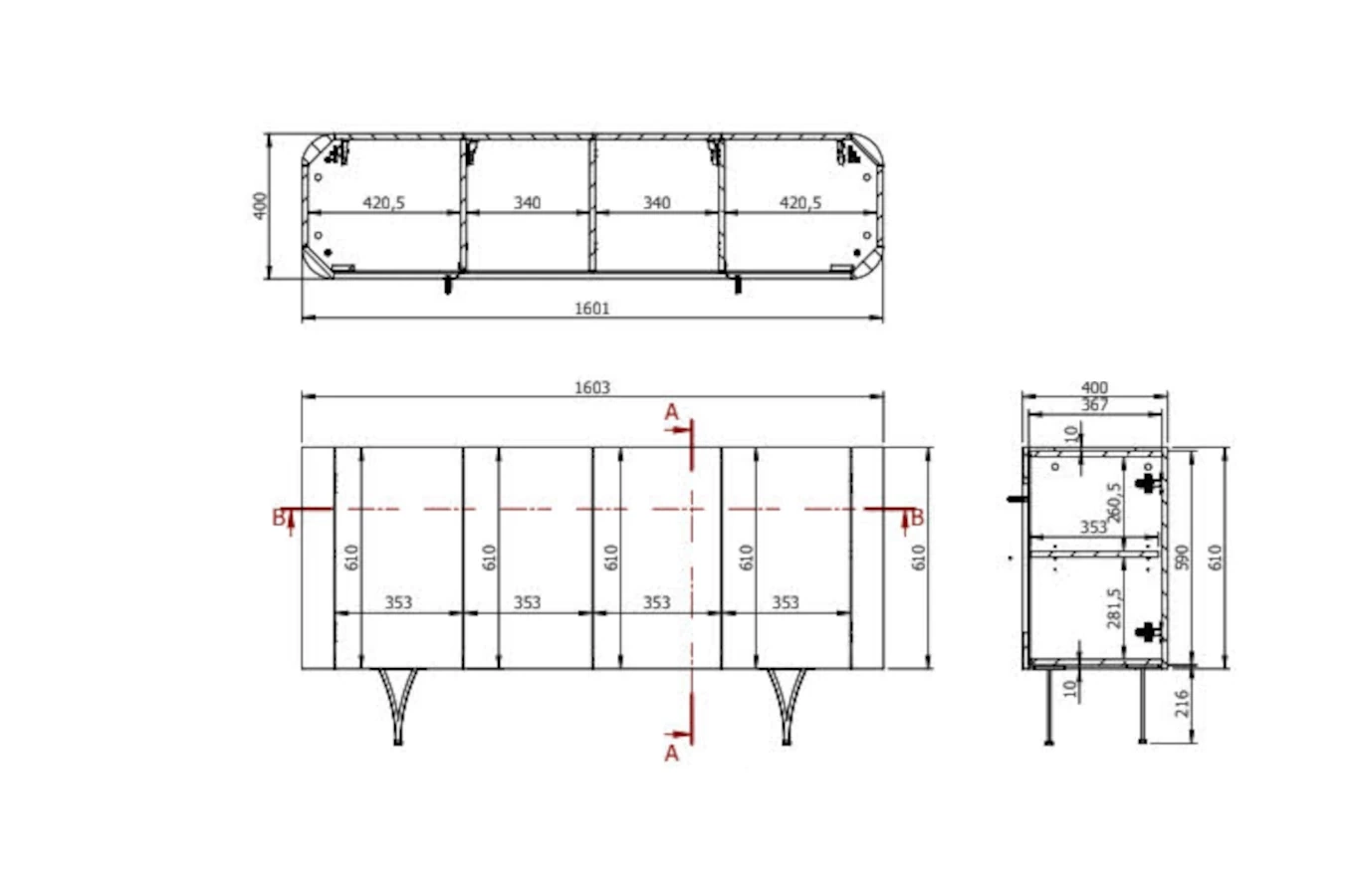 • Pojemne wnętrze: 4 szafki z półkami regulowanymi w trzech poziomach.