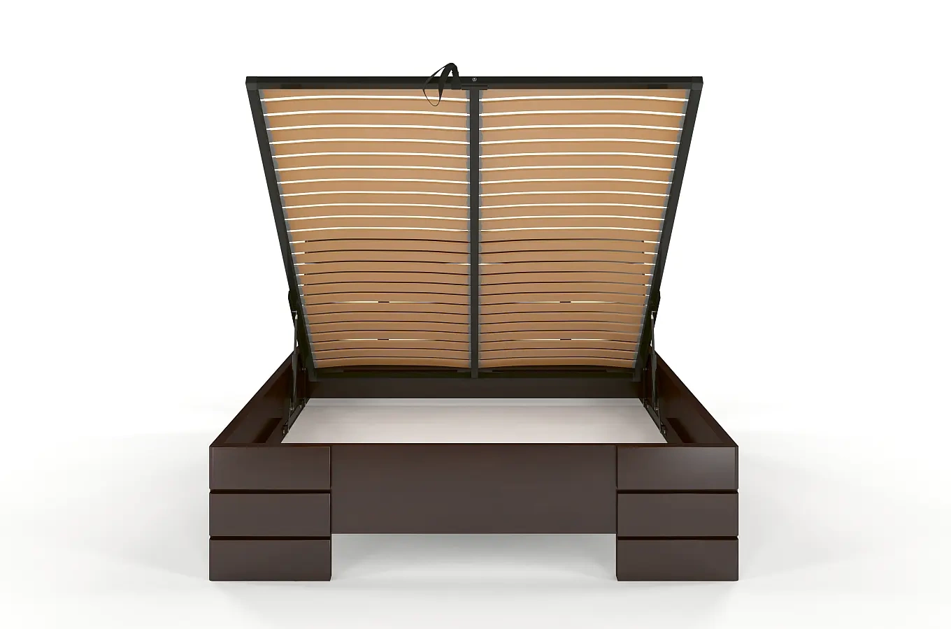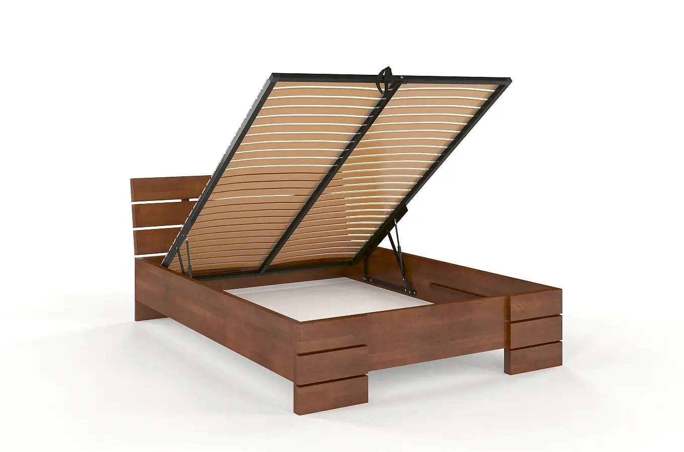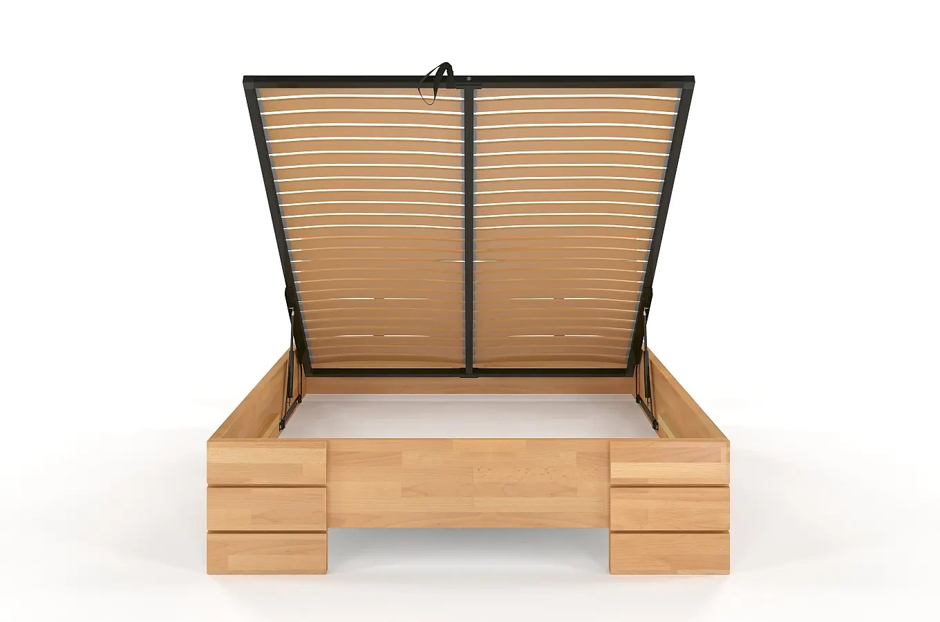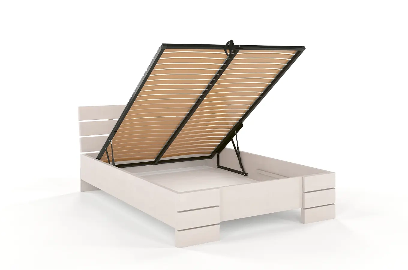Do każdego łóżka z pojemnikiem na pościel dołączamy bezpłatnie zagęszczony stelaż z giętej sklejki brzozowej. Taki stelaż zapewnia najlepsze podparcie dla materaca oraz zapewnia jego długą żywotność.