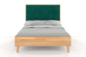 Drewniane łóżko z tapicerowanym zagłówkiem