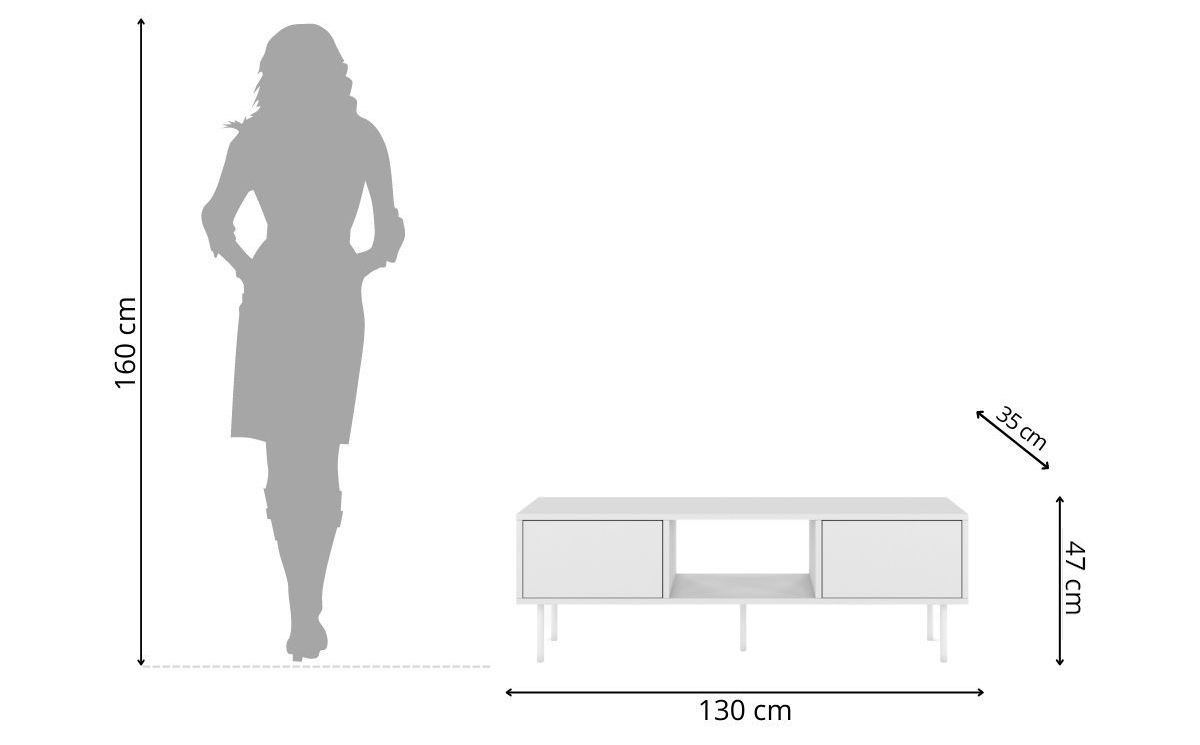 Szafka RTV MIRKA to funkcjonalny mebel, o prostej formie, wykonany z wysokiej jakości materiałów, które świetnie się ze sobą komponują. Biała, matowa płyta laminowana i metalowe nogi, również w białym kolorze, wyglądają spójnie i powodują, że mebel wygląda niezwykle elegancko. Szafkę wyposażono w dwie pojemne szuflady oraz otwartą półkę. Dla wygody oraz podkreślenia minimalizmu szafka nie ma uchwytów. Do otwierania i zamykania szuflad zastosowano system Push to Open - delikatne pchnięcie szuflad sprawia, że otwierają się one samoczynnie. Wysokie – na 20 cm nogi – dodają szafce lekkości, ale są przede wszystkim praktyczne. Bez problemu zmieści się pod nimi robot sprzątający!