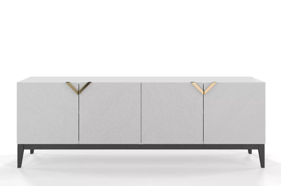 Drewniana komoda Visby DEMI LONG / kolor biały + czarne nogi / szer. 201,5 cm