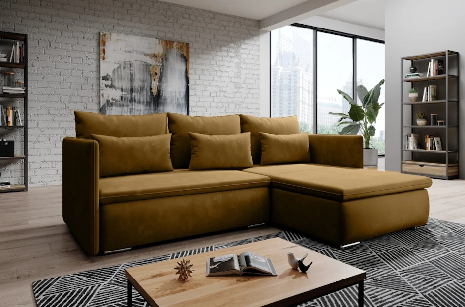 |Nowoczesny rozkładany narożnik LOCA z funkcją spania i pojemnikiem na pościel