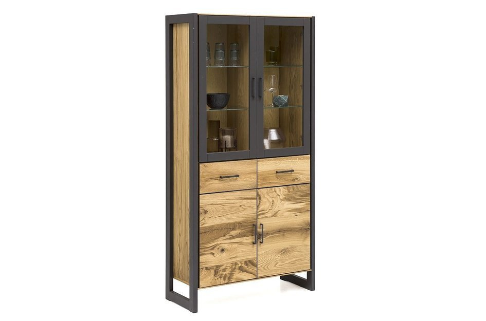 |Nowoczesna dębowa witryna ze szklanymi drzwiami TURID 2S2D / szer. 97,5 cm