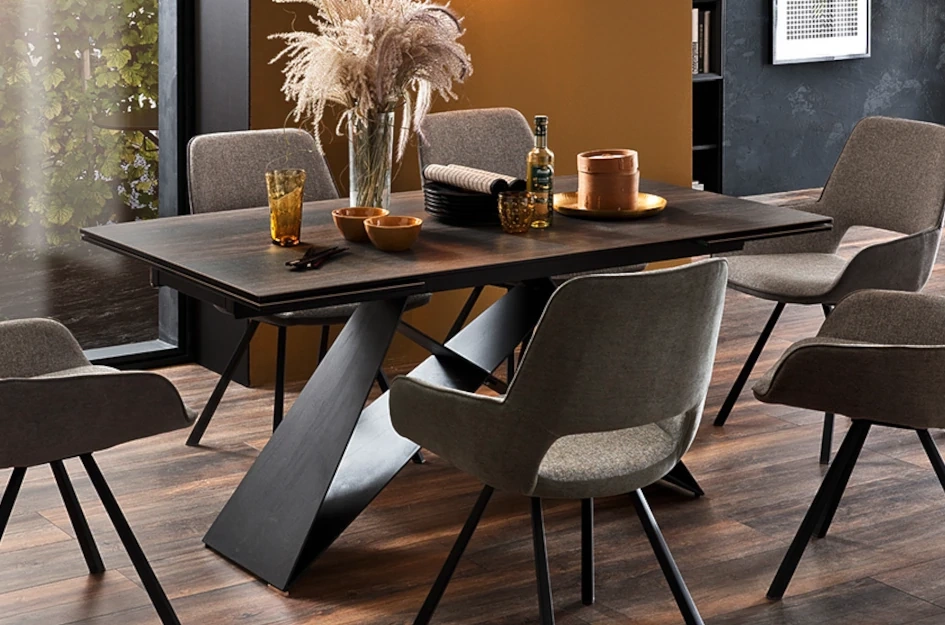 Nowoczesny rozkładany stół KOBE z ceramicznym blatem na metalowych nogach, kolor antracyt / 160-240 x 90 cm