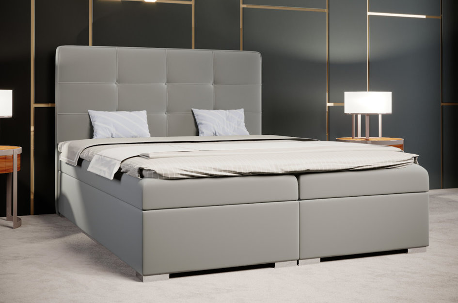 Eleganckie tapicerowane łóżko kontynentalne do sypialni ROYAL z pojemnikiem na pościel