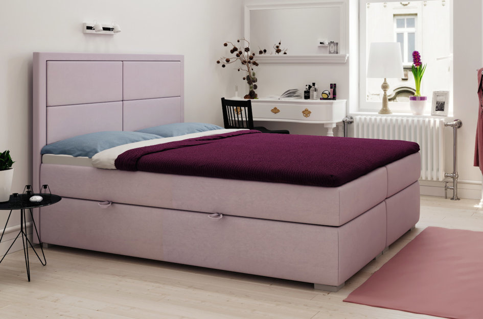 Eleganckie tapicerowane łóżko kontynentalne GEORGE z pojemnikiem na pościel