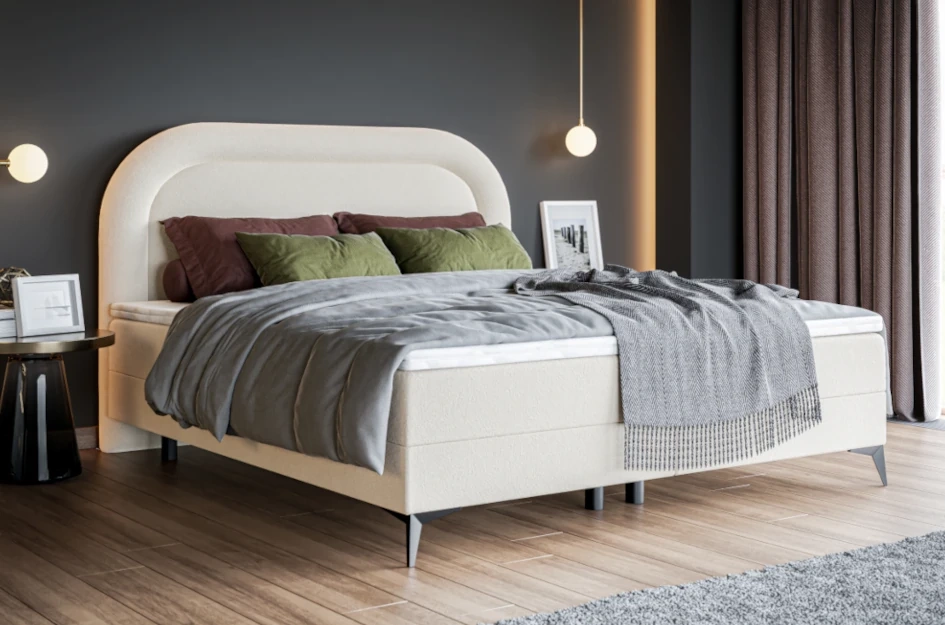 Tapicerowane łóżko kontynentalne DIEGO z półokrągłym zagłówkiem