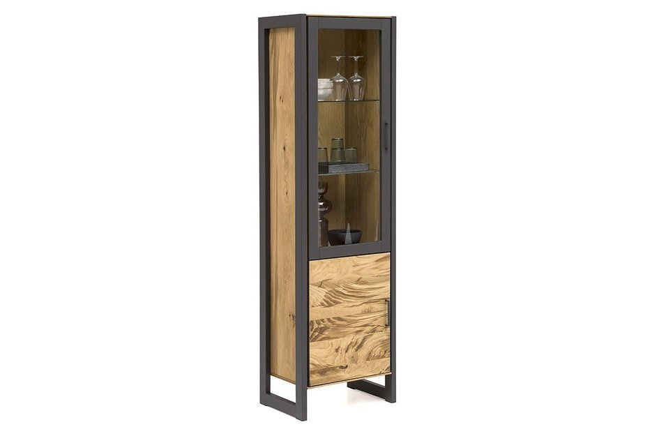 |Nowoczesna dębowa komoda ze szklanymi drzwiami TURID 3S3D / szer. 97,5 cm