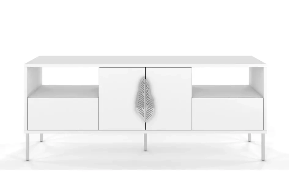 Biała komoda RTV Skandica MERLIN ze srebrnymi dodatkami / szer. 138 cm
