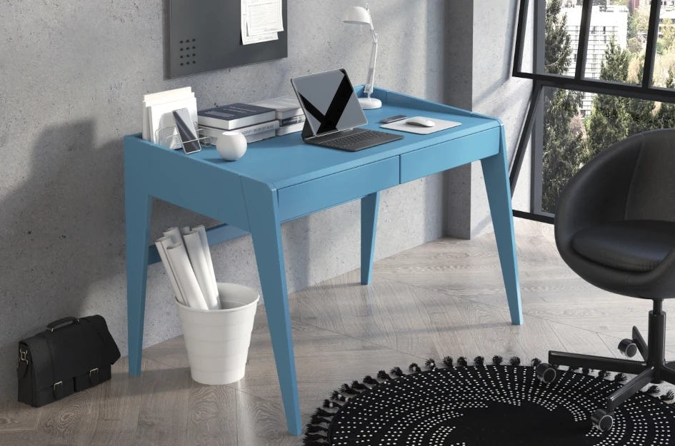 Drewniane biurko / toaletka z szufladami Visby LISA / kolor pastelowy niebieski / 125x70 cm