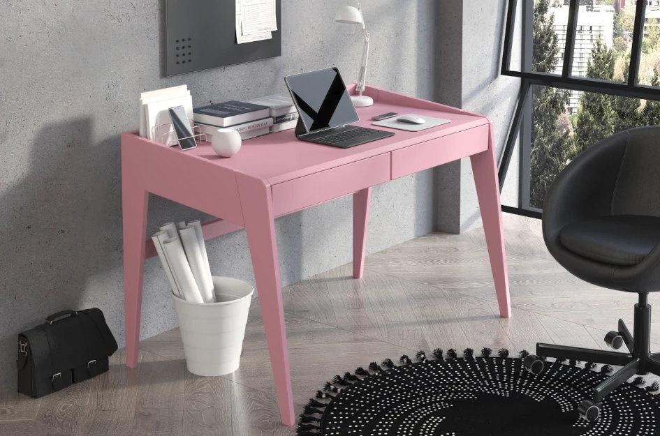 Drewniane biurko / toaletka z szufladami Visby LISA / kolor pudrowy róż / 125x70 cm