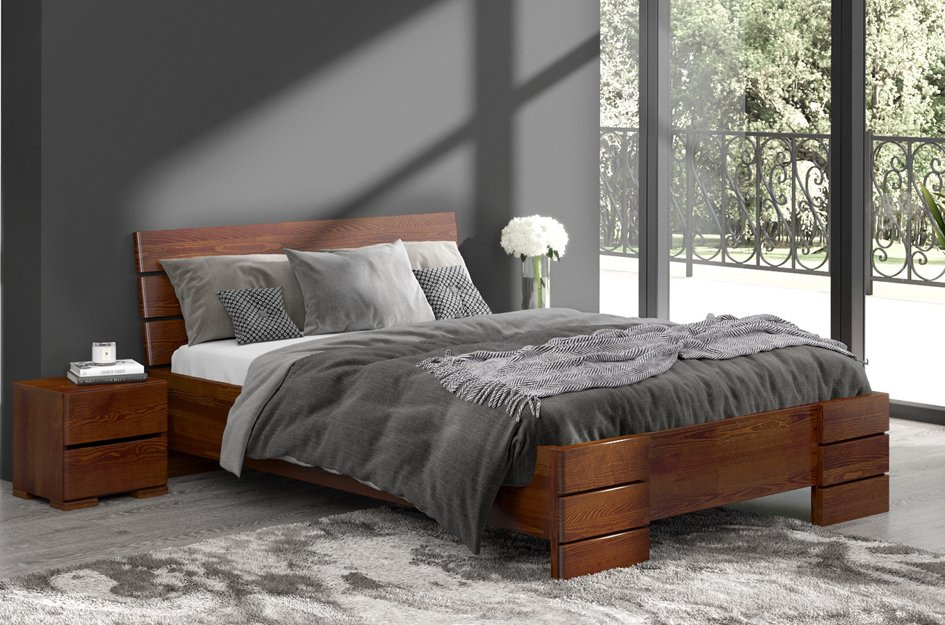 Łóżko drewniane sosnowe Visby Sandemo HIGH & BC (Skrzynia na pościel)
