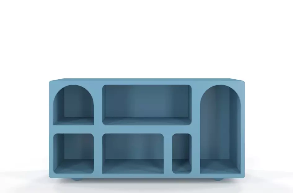 Drewniana komoda - regał - szafka RTV z łukami Visby OLIMPIA LONG / kolor pastelowy niebieski / szer. 140 cm