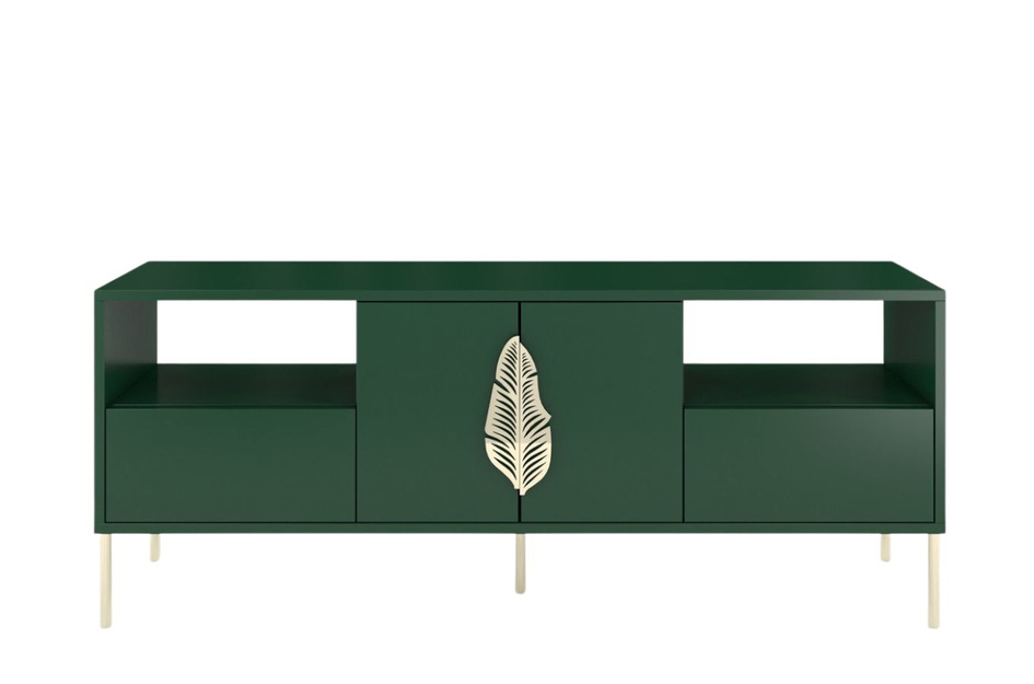 Zielona komoda RTV Skandica MERLIN ze złotymi dodatkami / szer. 138 cm