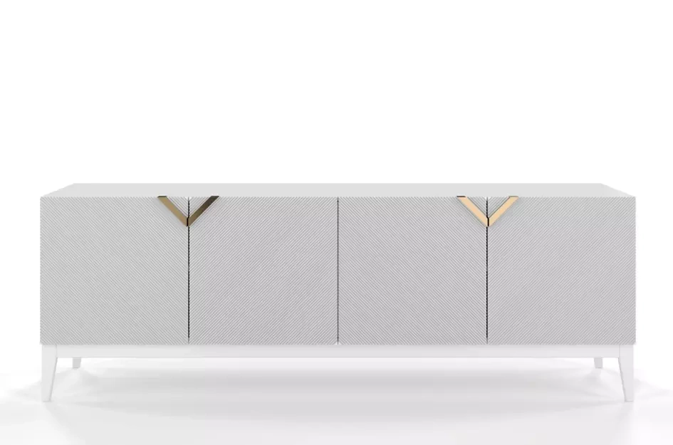 Drewniana komoda Visby DEMI LONG / kolor biały + białe nogi / szer. 201,5 cm