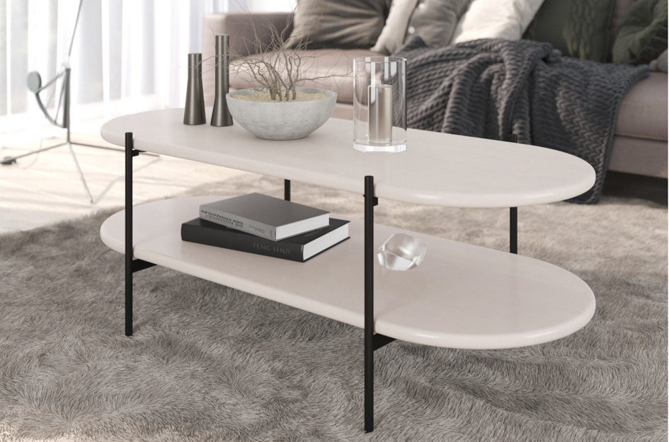 Stolik drewniany bukowy Skandica DOTA w kolorze białym na metalowych nogach
