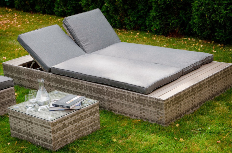 |Zestaw mebli ogrodowych z polirattanu FORTE - sofa + dwa krzesła + stolik z blatem z hartowanego szkła
